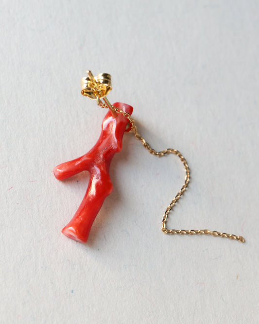 Rock Pierced Earring - Coral / Emerald -