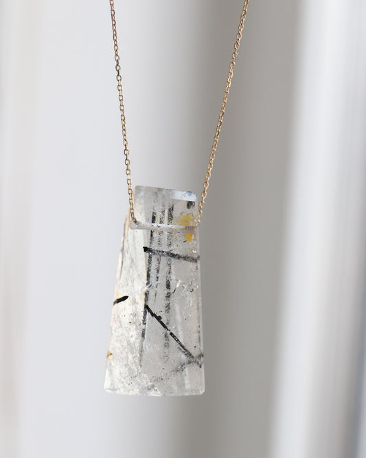 Bar stone Pierced Earring - Golden Rutilated Quartz -