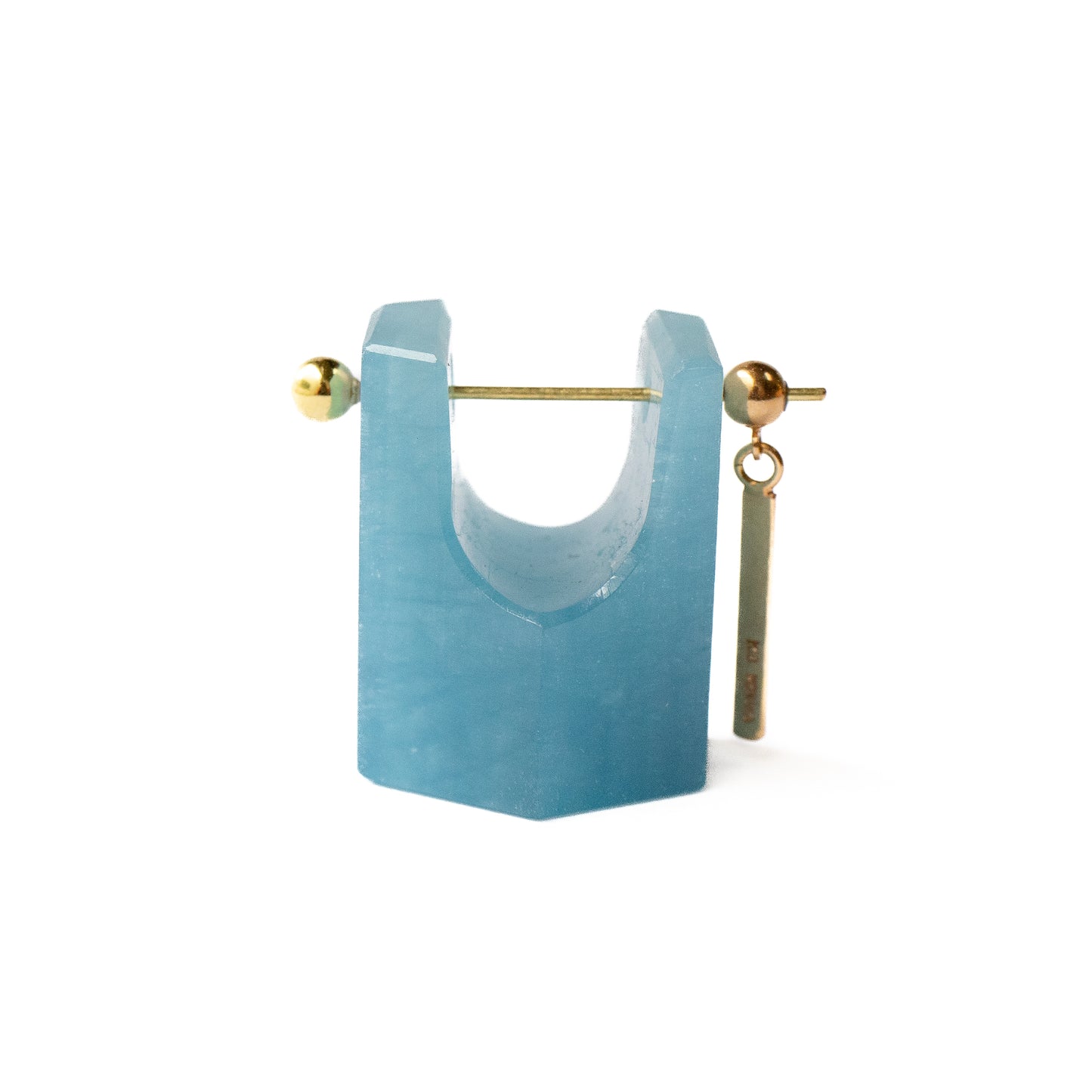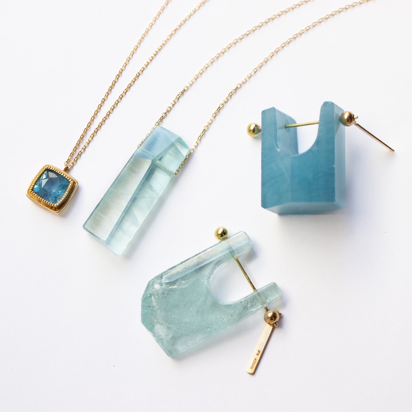 The design of the earrings is made from raw natural stones, and there are no other earrings with the same shape, so each one is unique. The U-shaped stone is placed between the earlobe and the earring post bar, creating an impressive profile. The parts are also made by MONAKA jewellery, and the unique design makes these earrings unique and new.