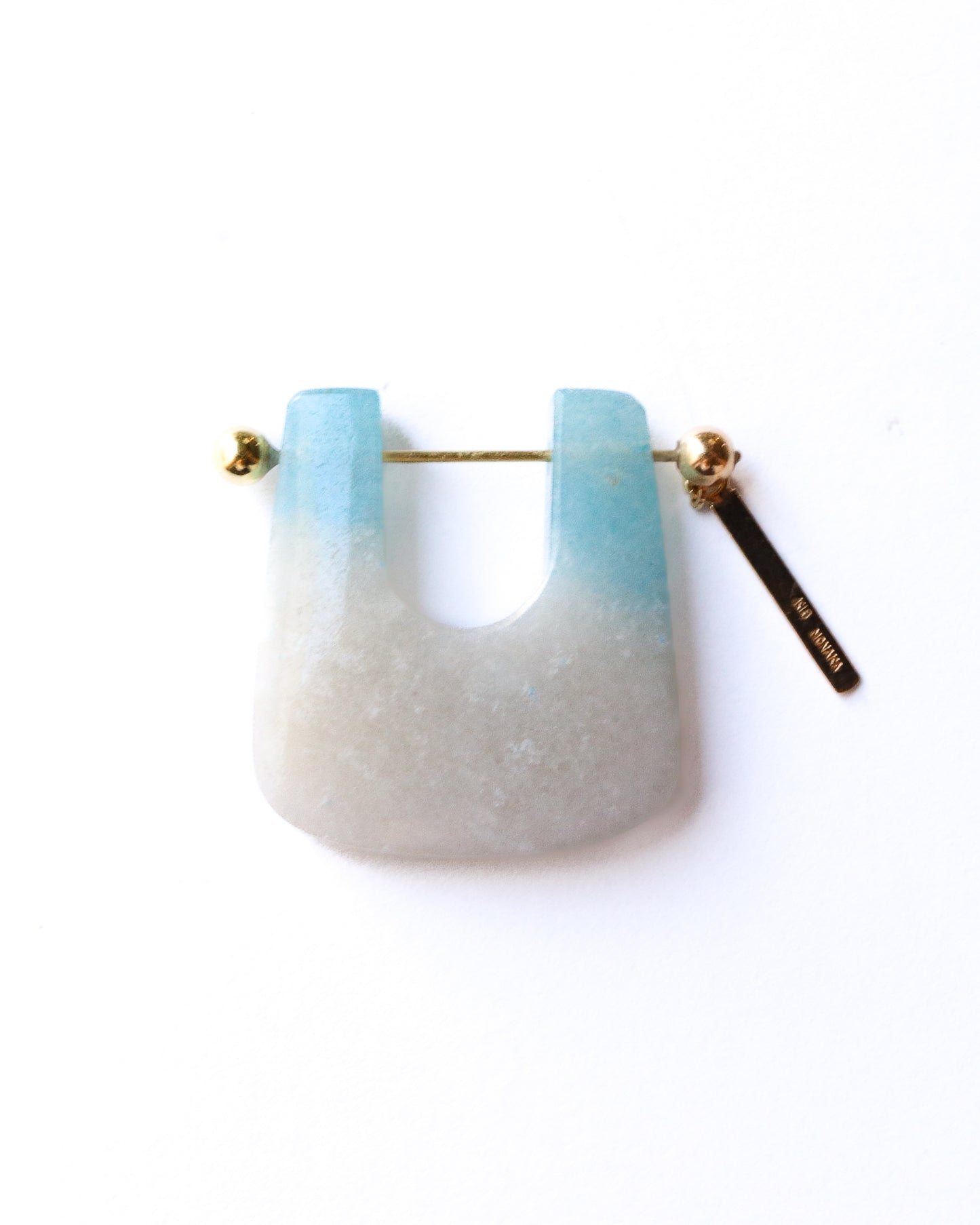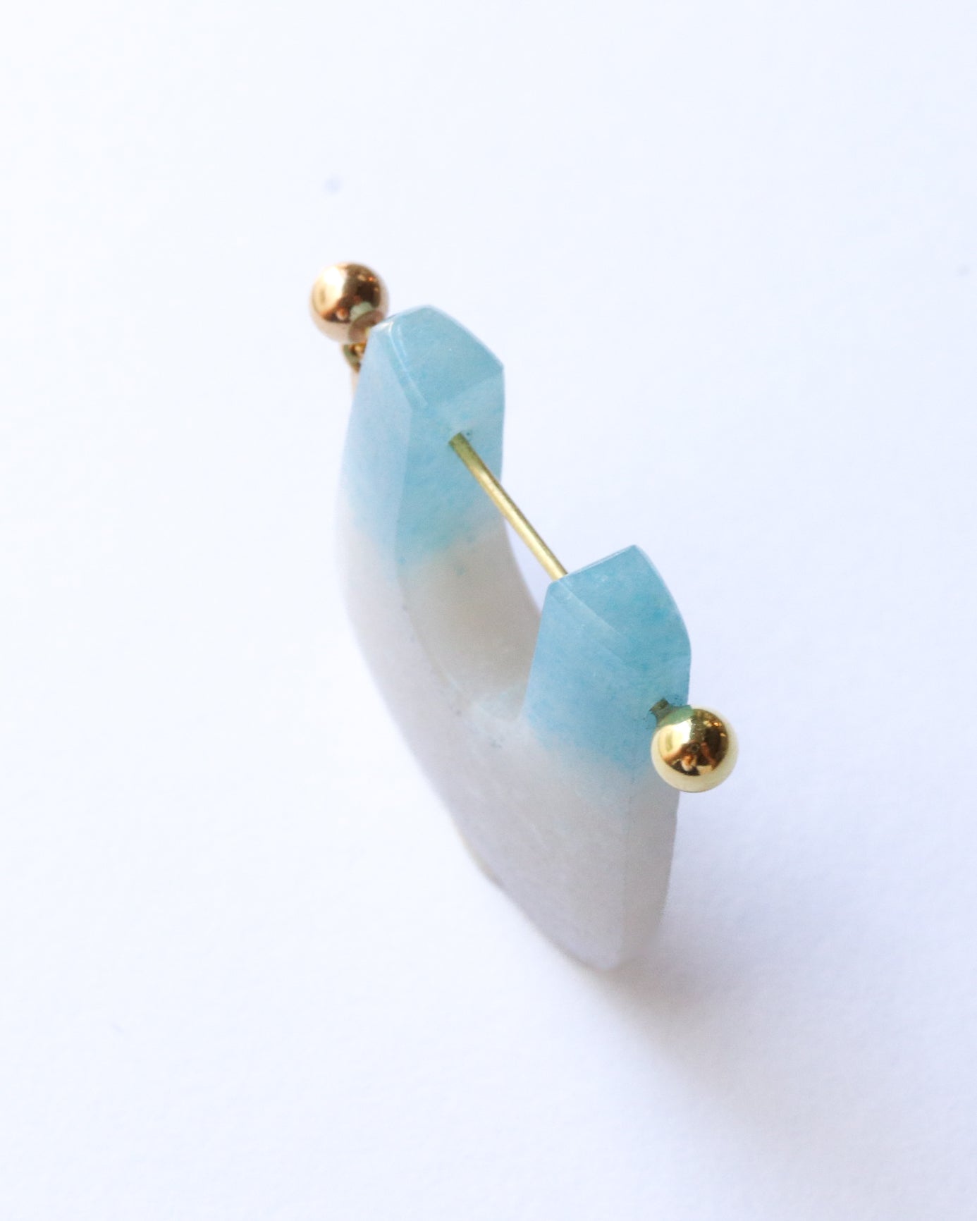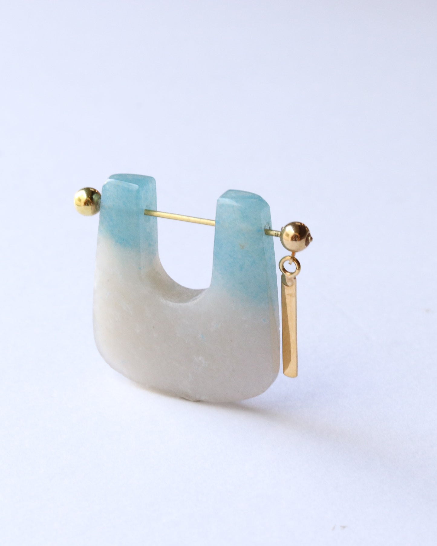 The design of the earrings is made from raw natural stones, and there are no two the same shape, so each one is unique. The U-shaped stone is placed between the earlobe and the earring post bar, creating an impressive profile. The parts are also MONAKA. These earrings are made by Jewellery and feature a unique design that gives them a distinctive and fresh look.