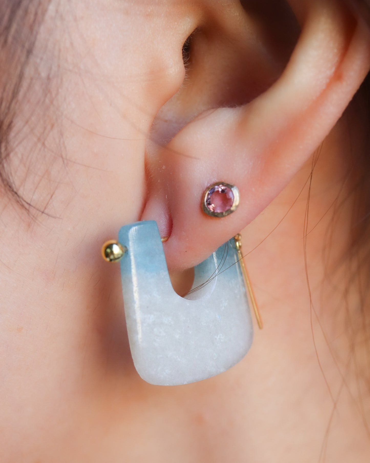 If it is difficult to pierce the post through your earlobe, we recommend removing the stone and threading just the post through the piercing hole before wearing the earring.