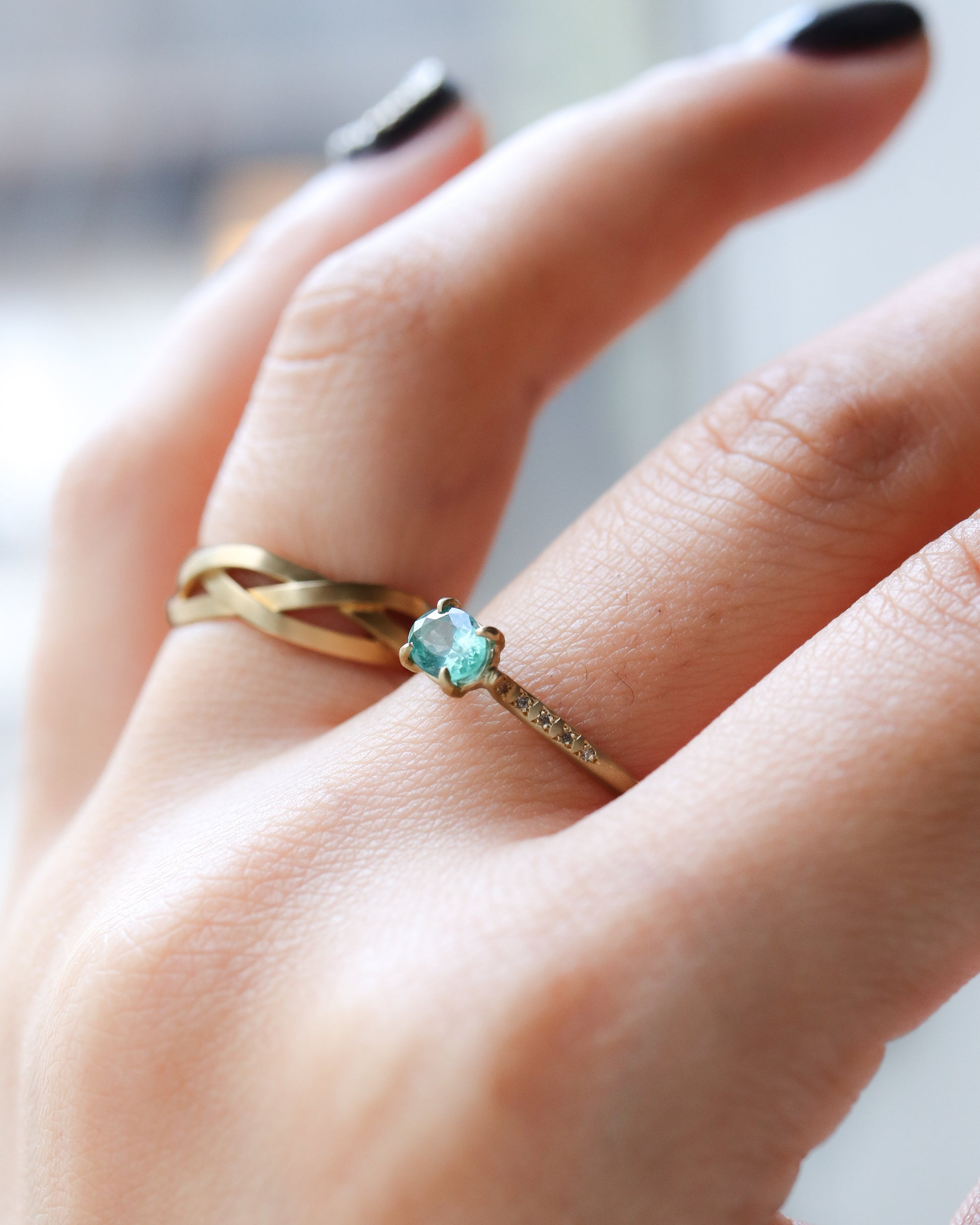Prong Ring - Emerald /Diamond-
