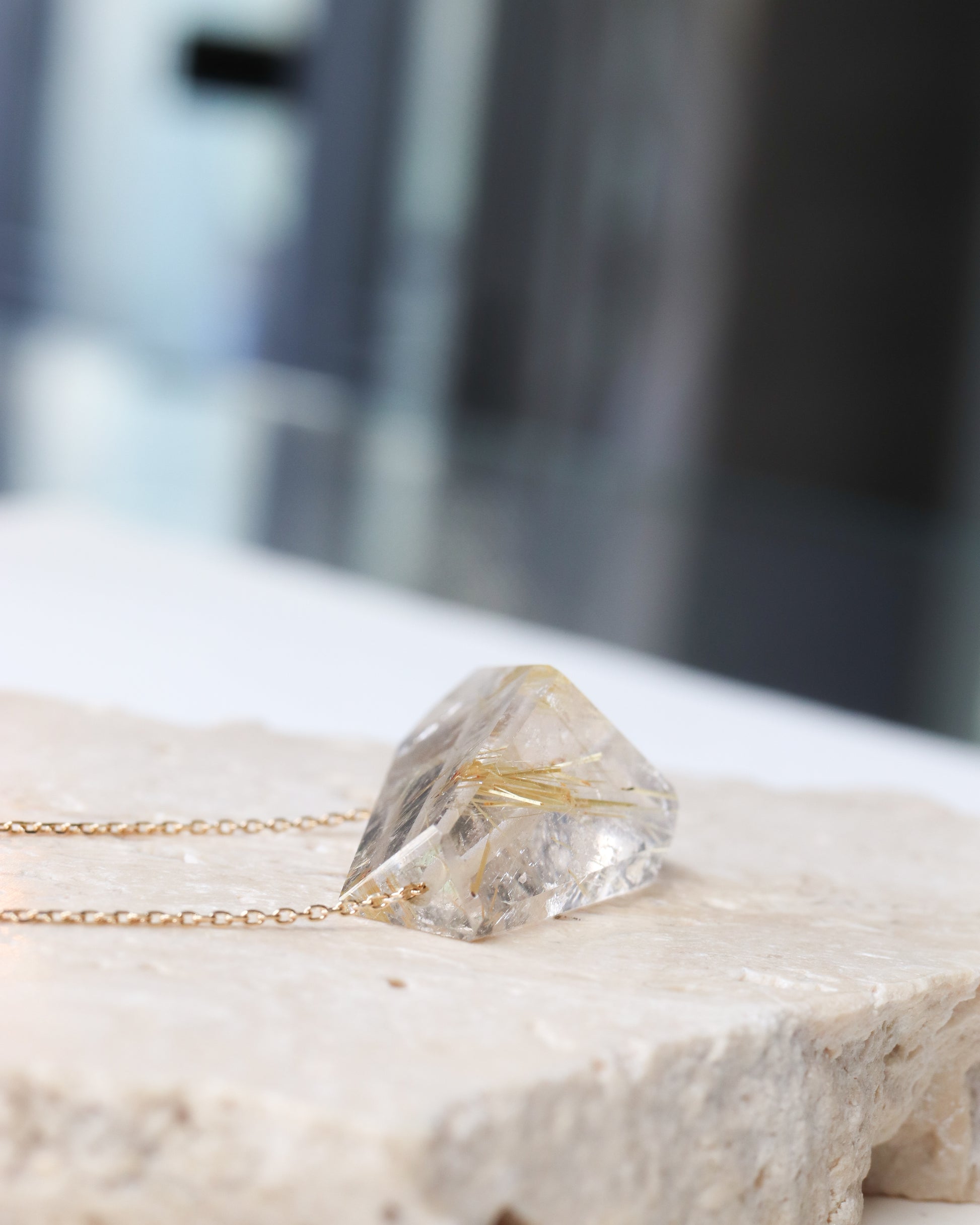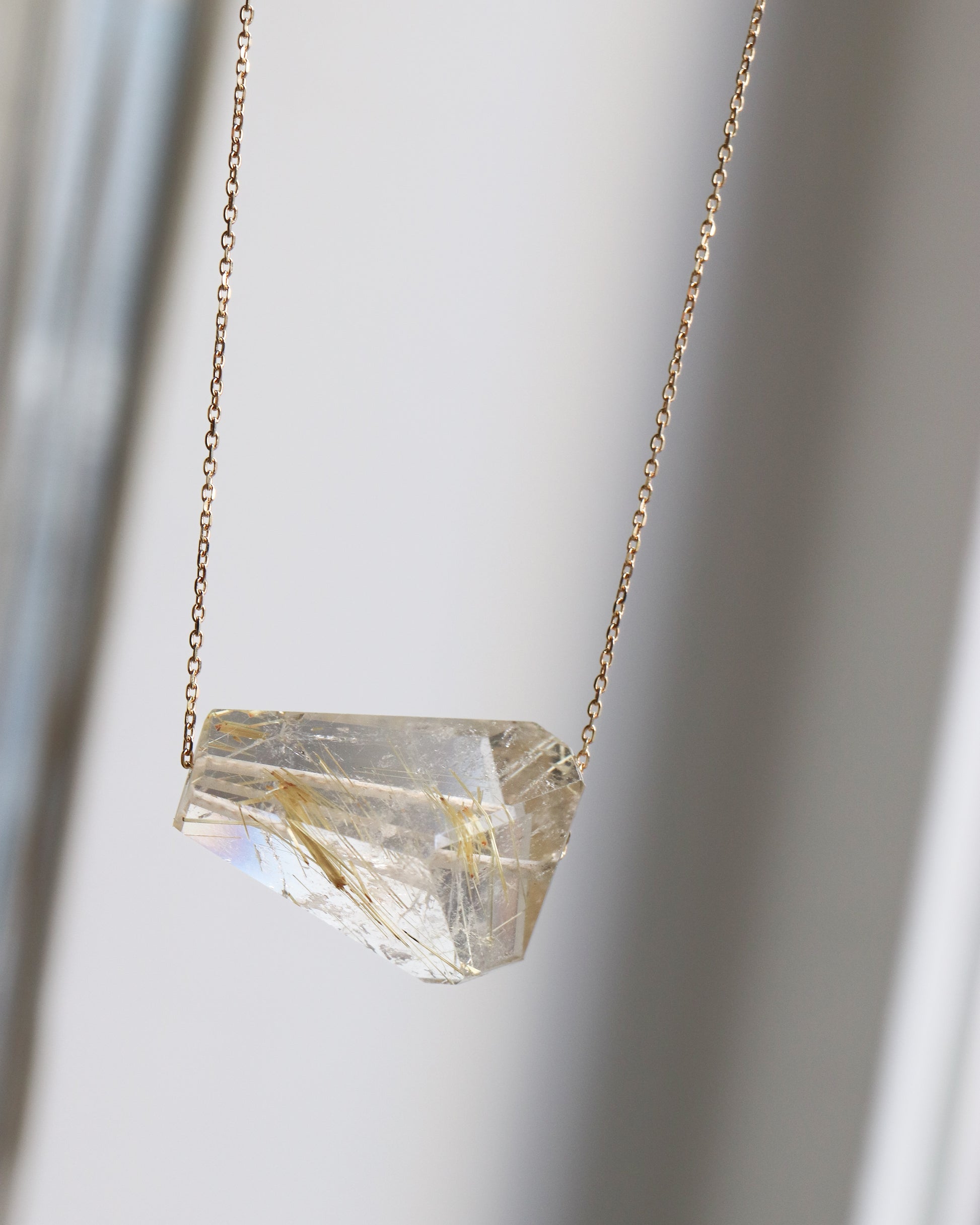 Rock Necklace - Golden Rutilated Quartz -