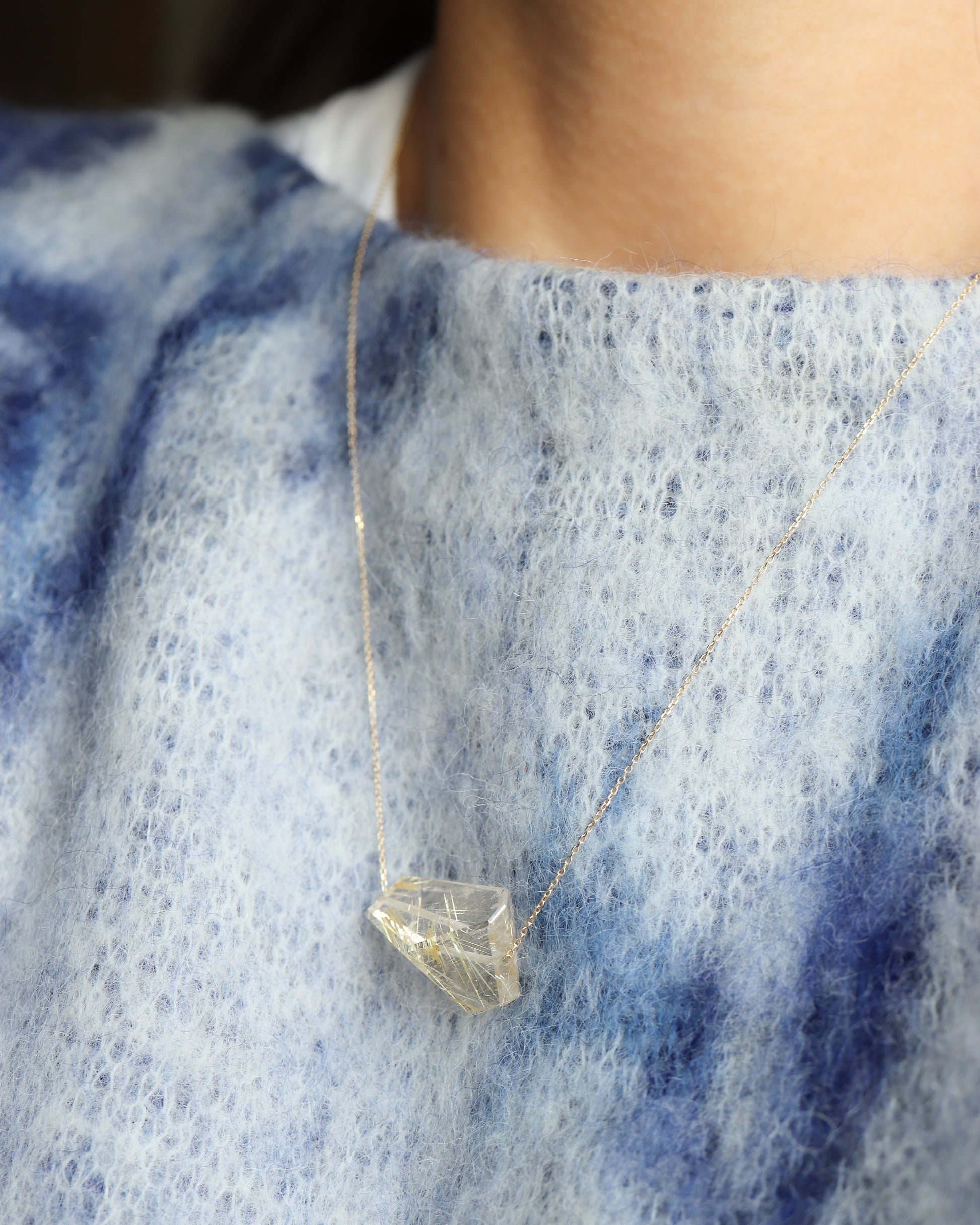 天然石を贅沢な大きさで使用したRockネックレス。クラックやインクルージョンをその石の個性と捉え、石枠を使用せずに最大限魅力を引き出したデザインです。チェーンにはさりげなくブランドプレートが付いています。