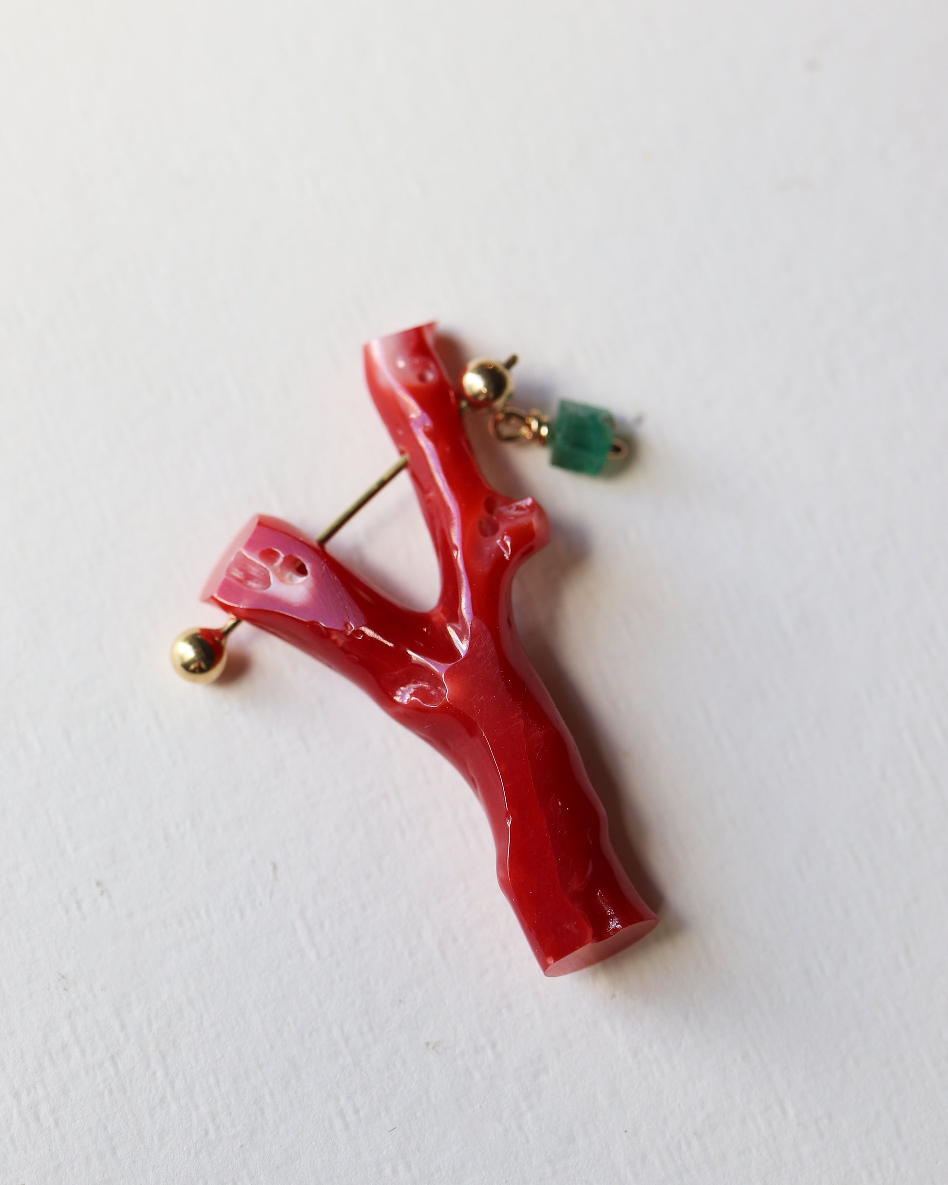 Product Name : Rock Pierced Earring - Coral / Emerald -