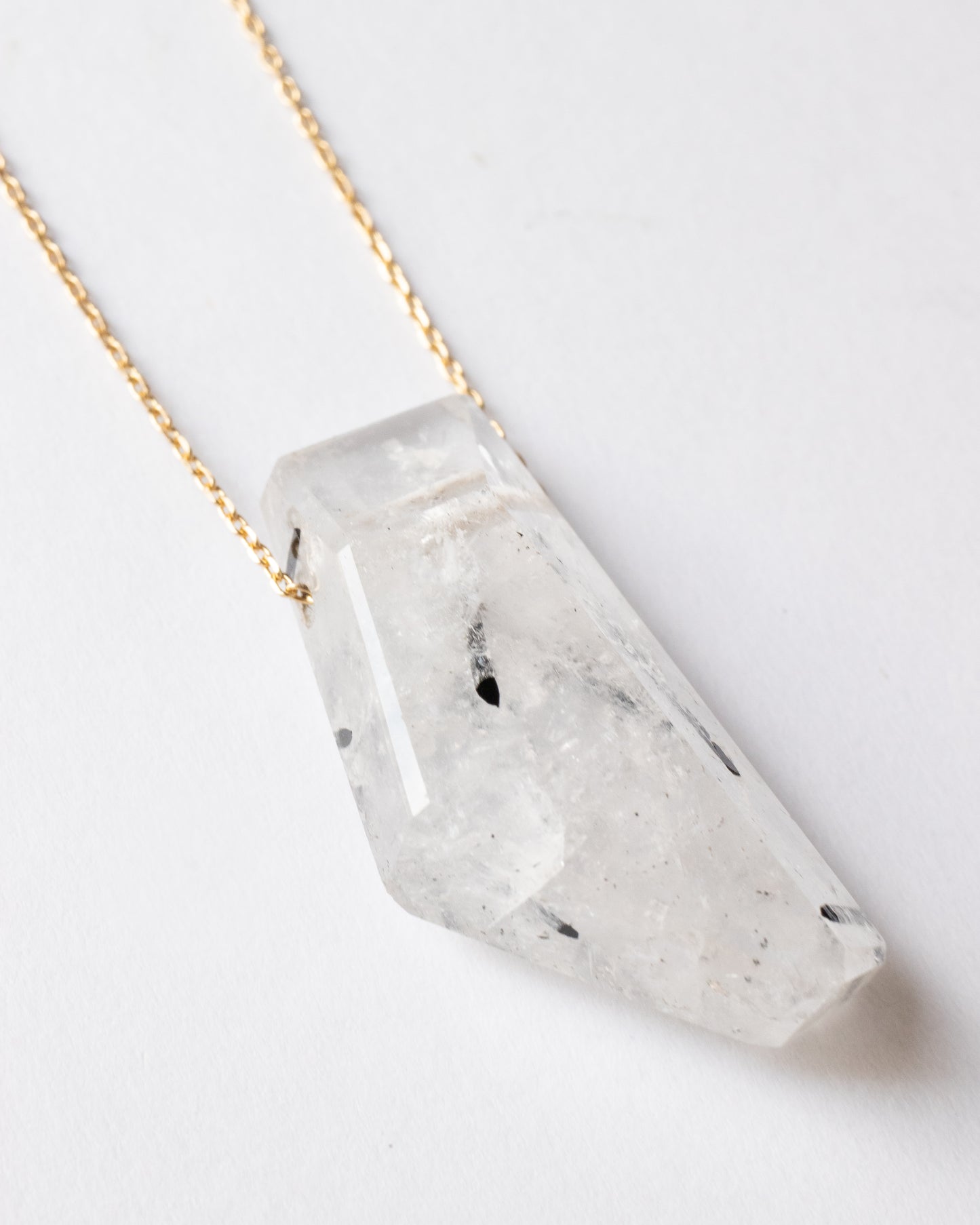 天然石を贅沢な大きさで使用したRockネックレス。クラックやインクルージョンをその石の個性と捉え、石枠を使用せずに最大限魅力を引き出したデザインです。チェーンにはさりげなくブランドプレートが付いています。