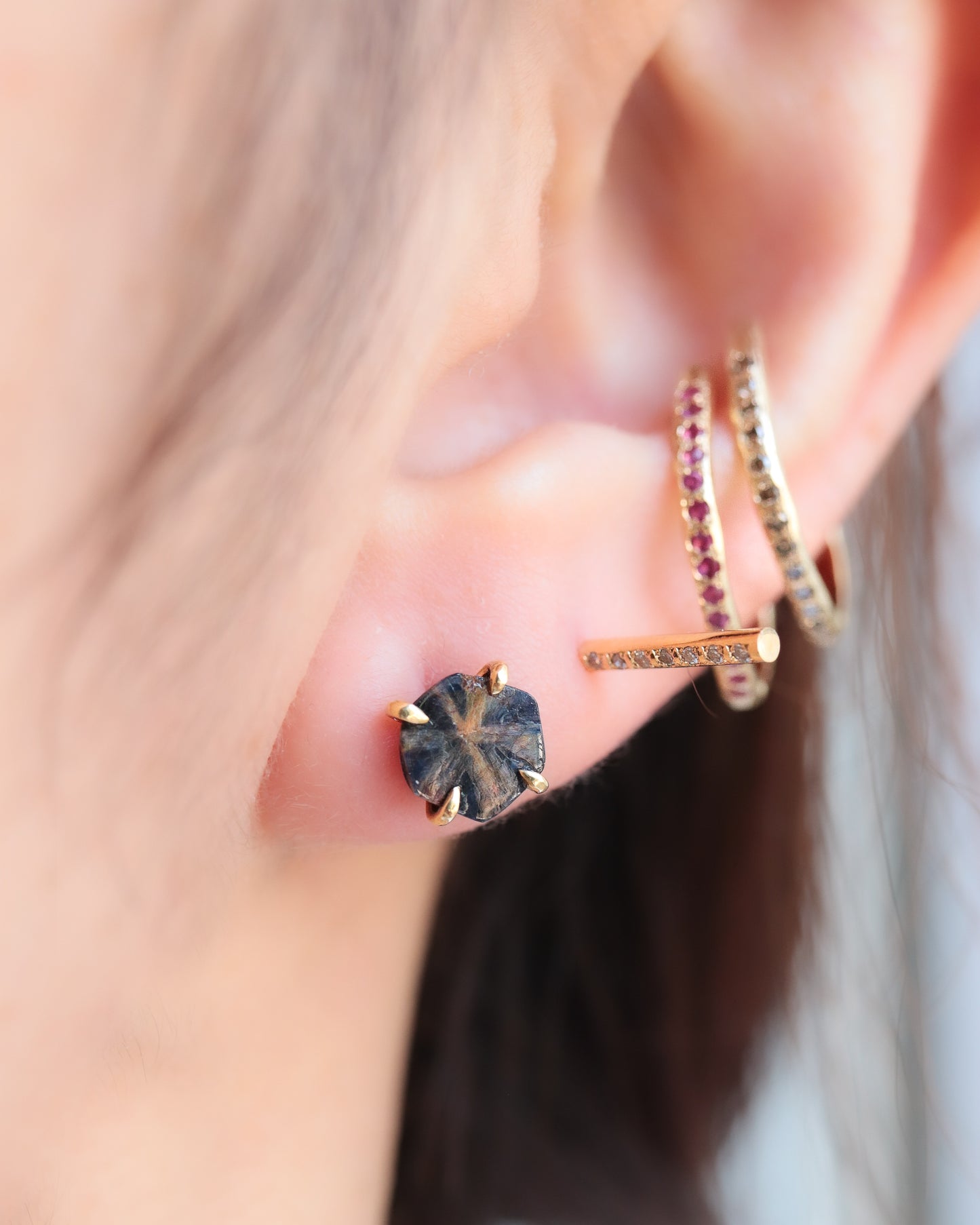 Product Name : Prong Pierced Earring - Trapiche Sapphire -