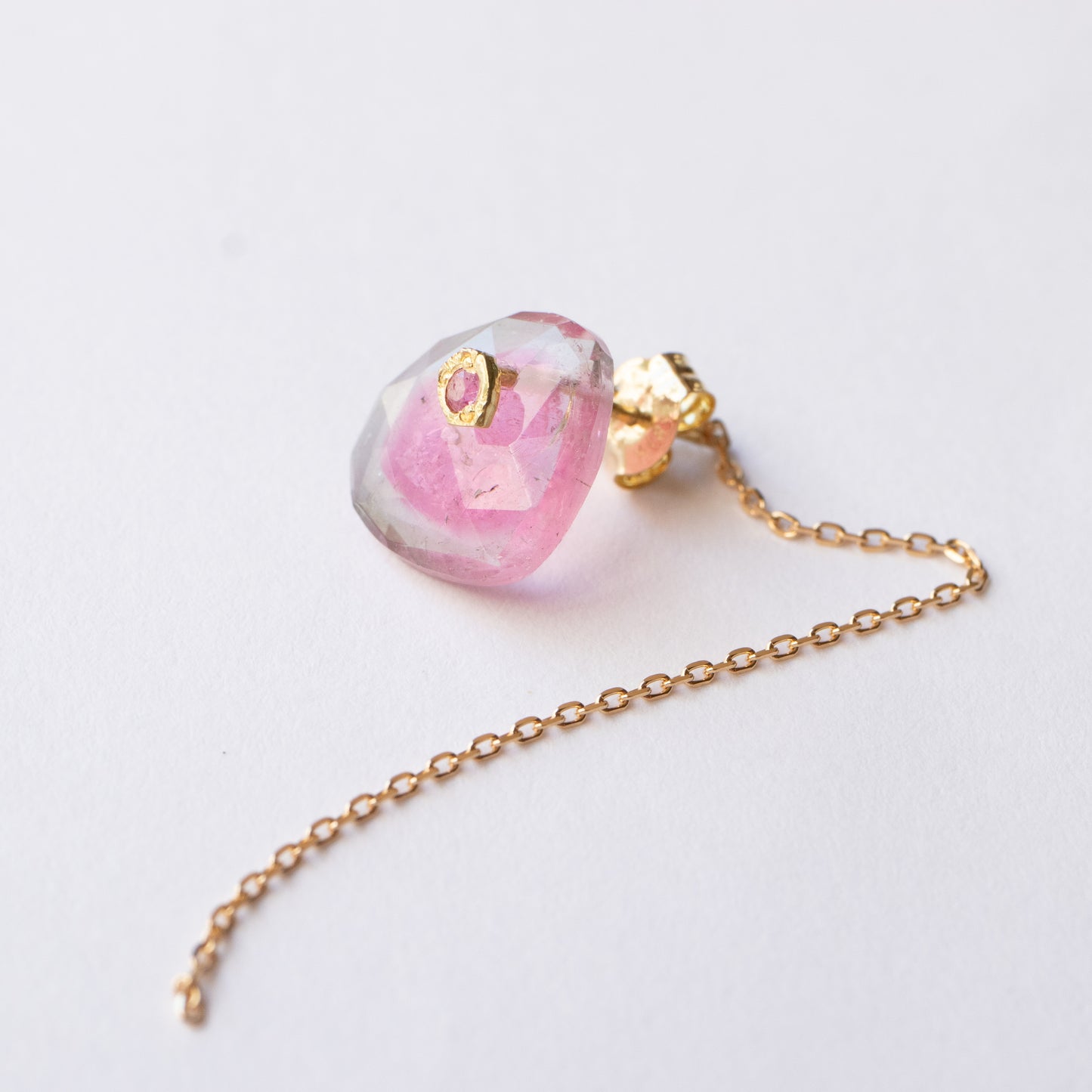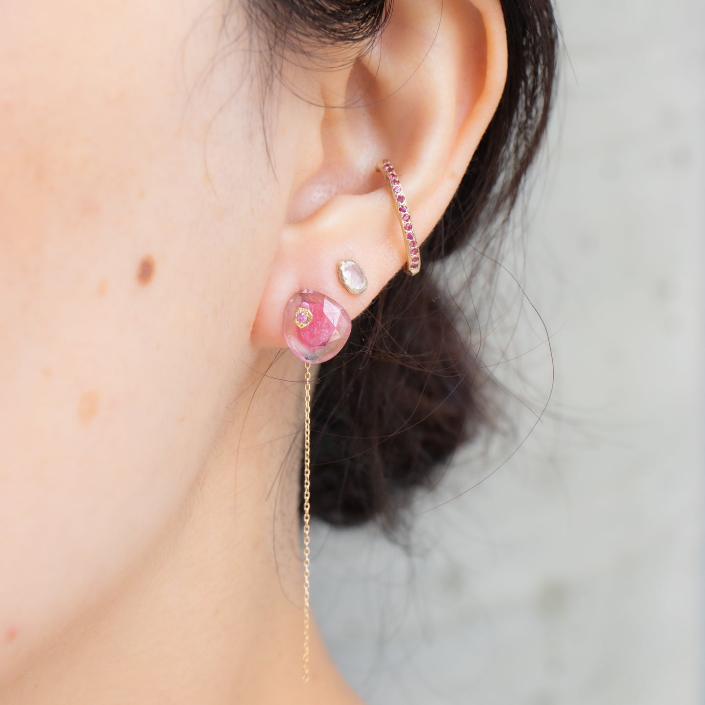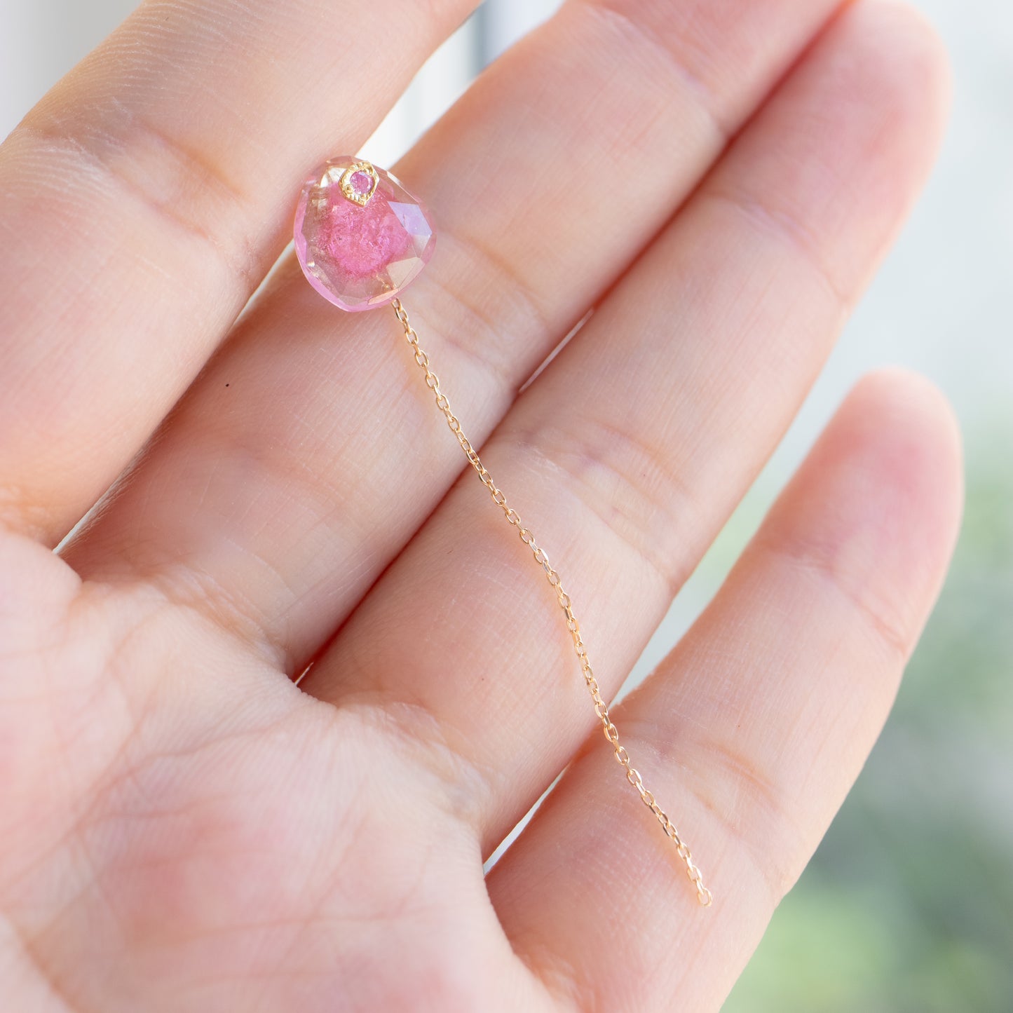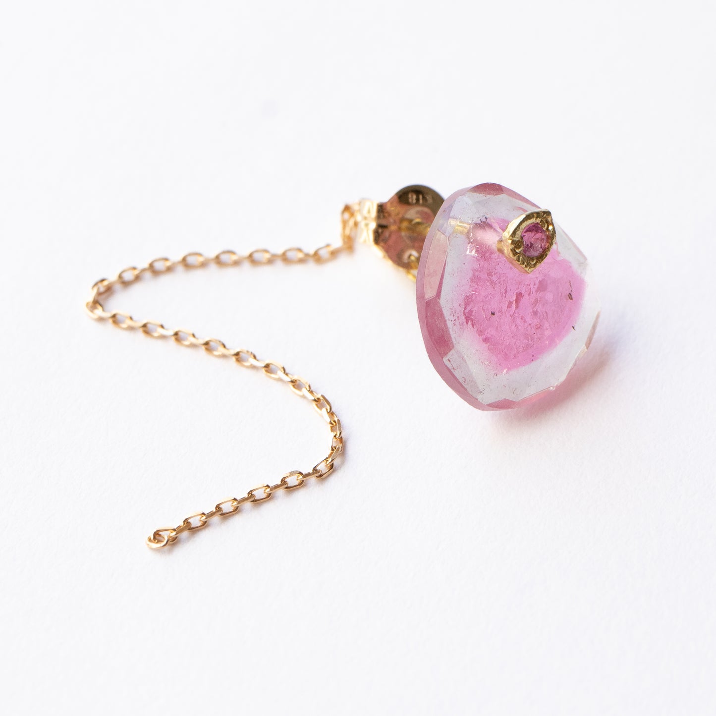 石の取り外しが可能で、ポストとチェーン付きのキャッチだけでシンプルに使用したり、チェーン付きのキャッチを他のピアスにも使用できる汎用性の高いデザインです。