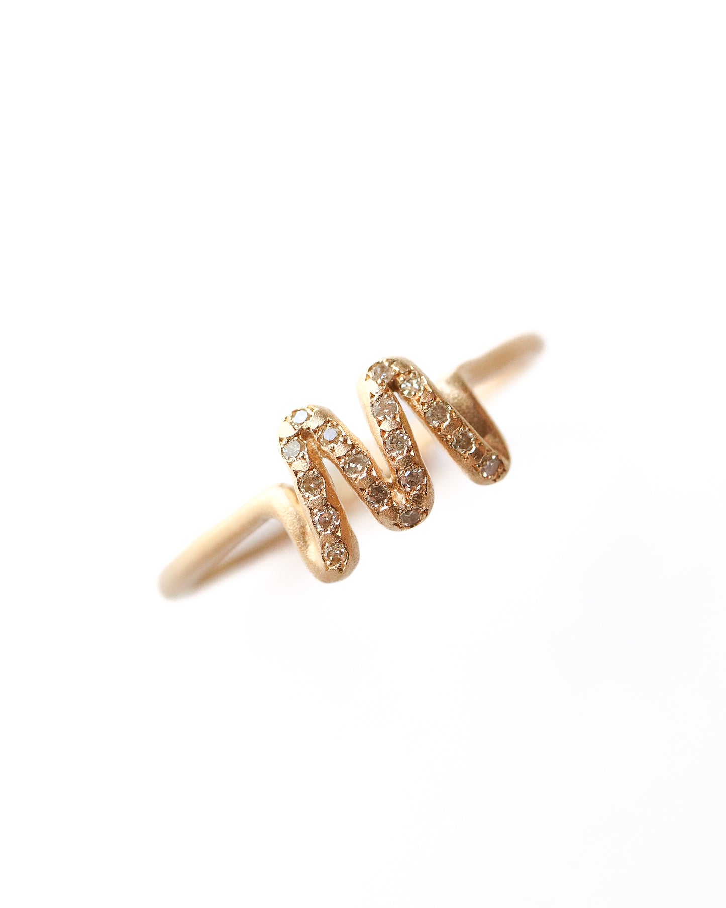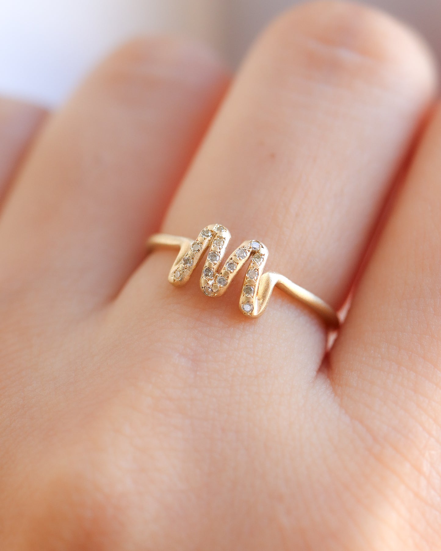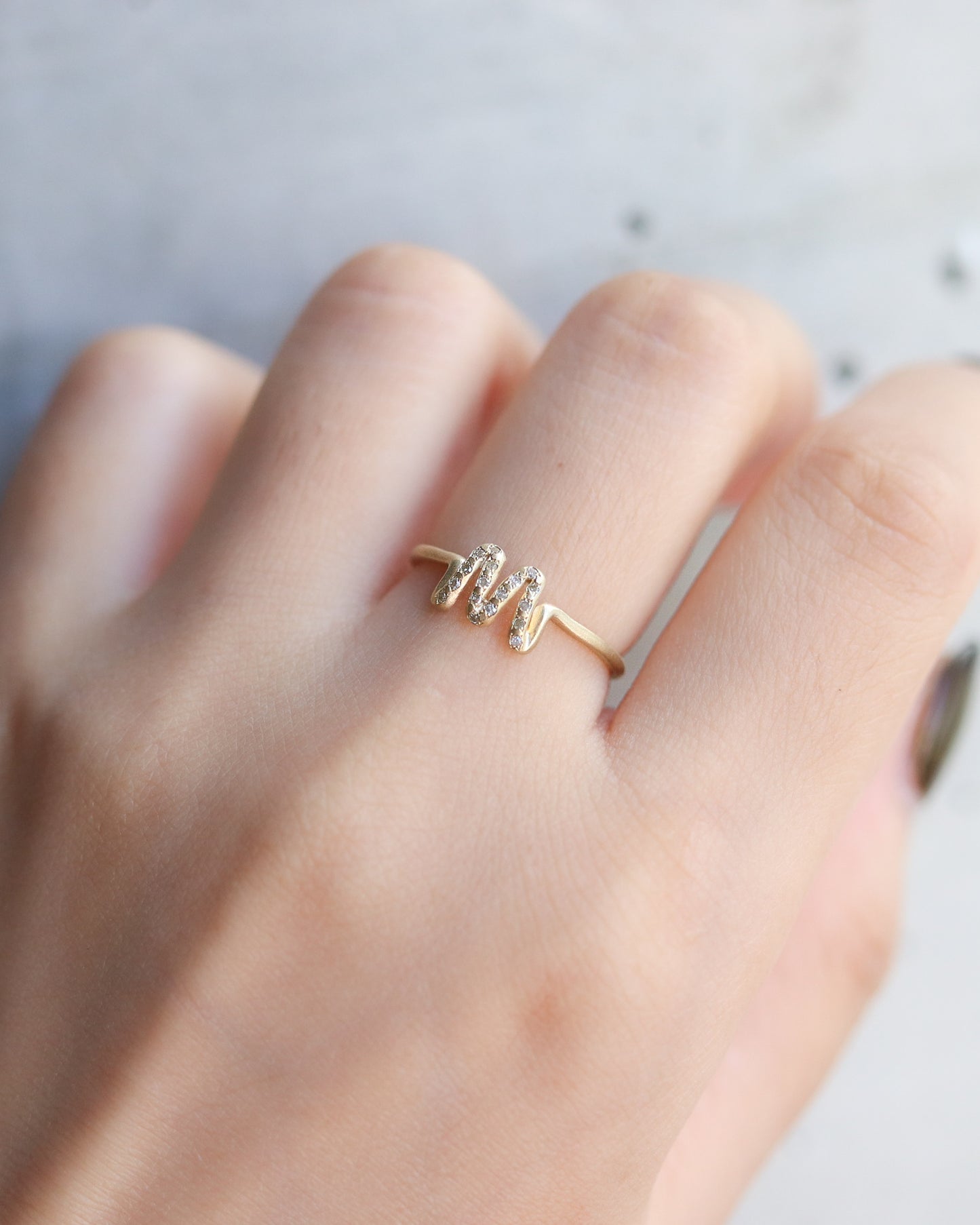一筆書きのように、ゴールドの滑らかな曲線で文字を表現した”Initial”。