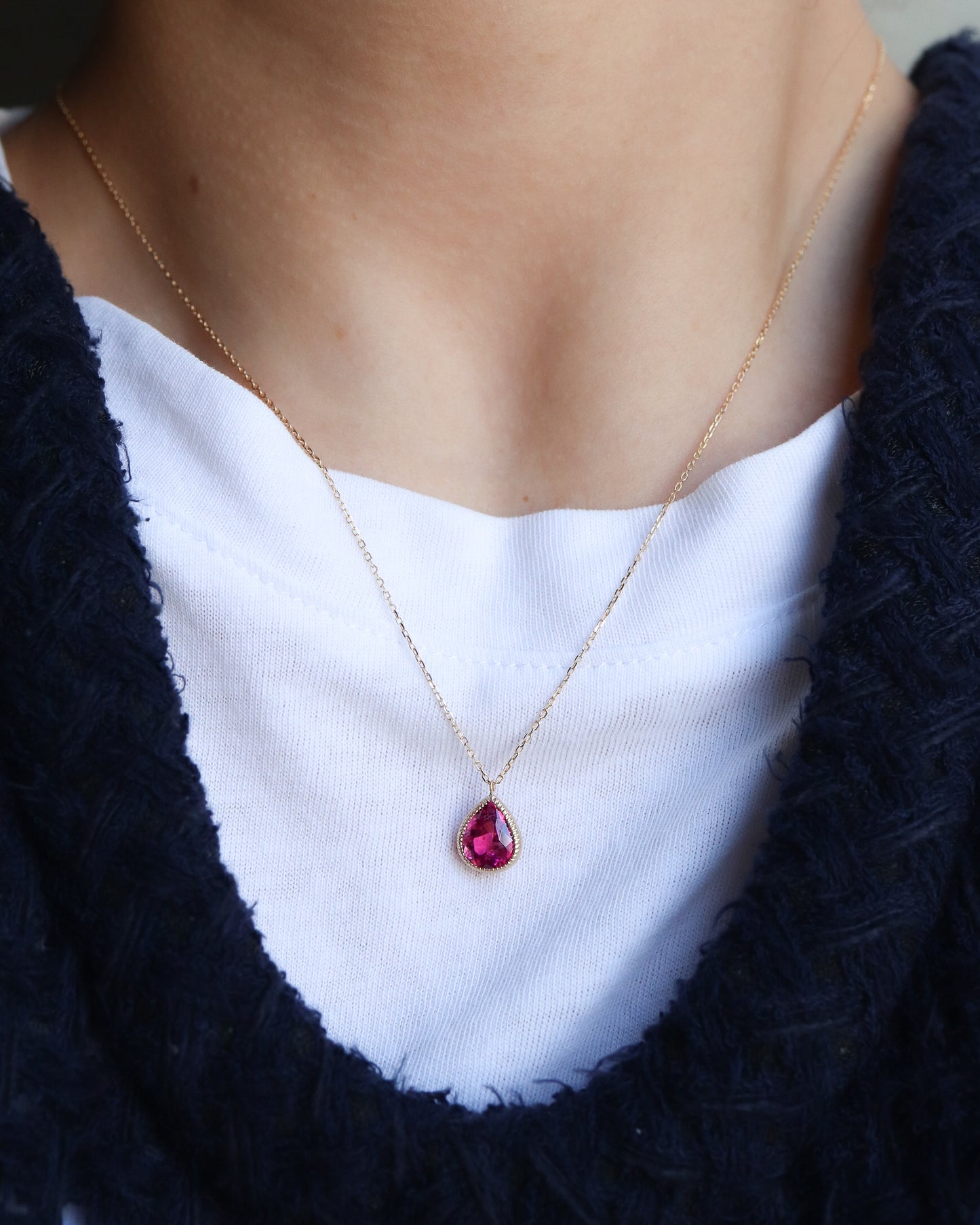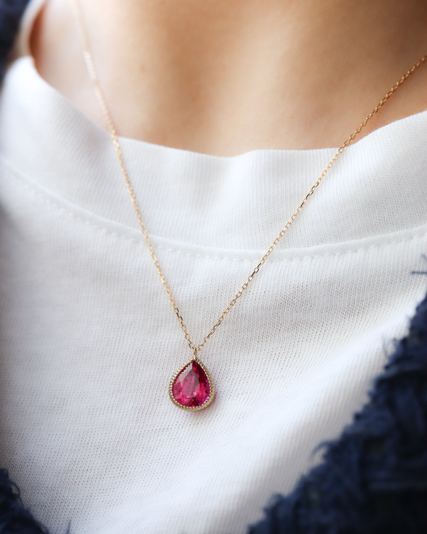 Milgrain Necklace - Rubellite -
