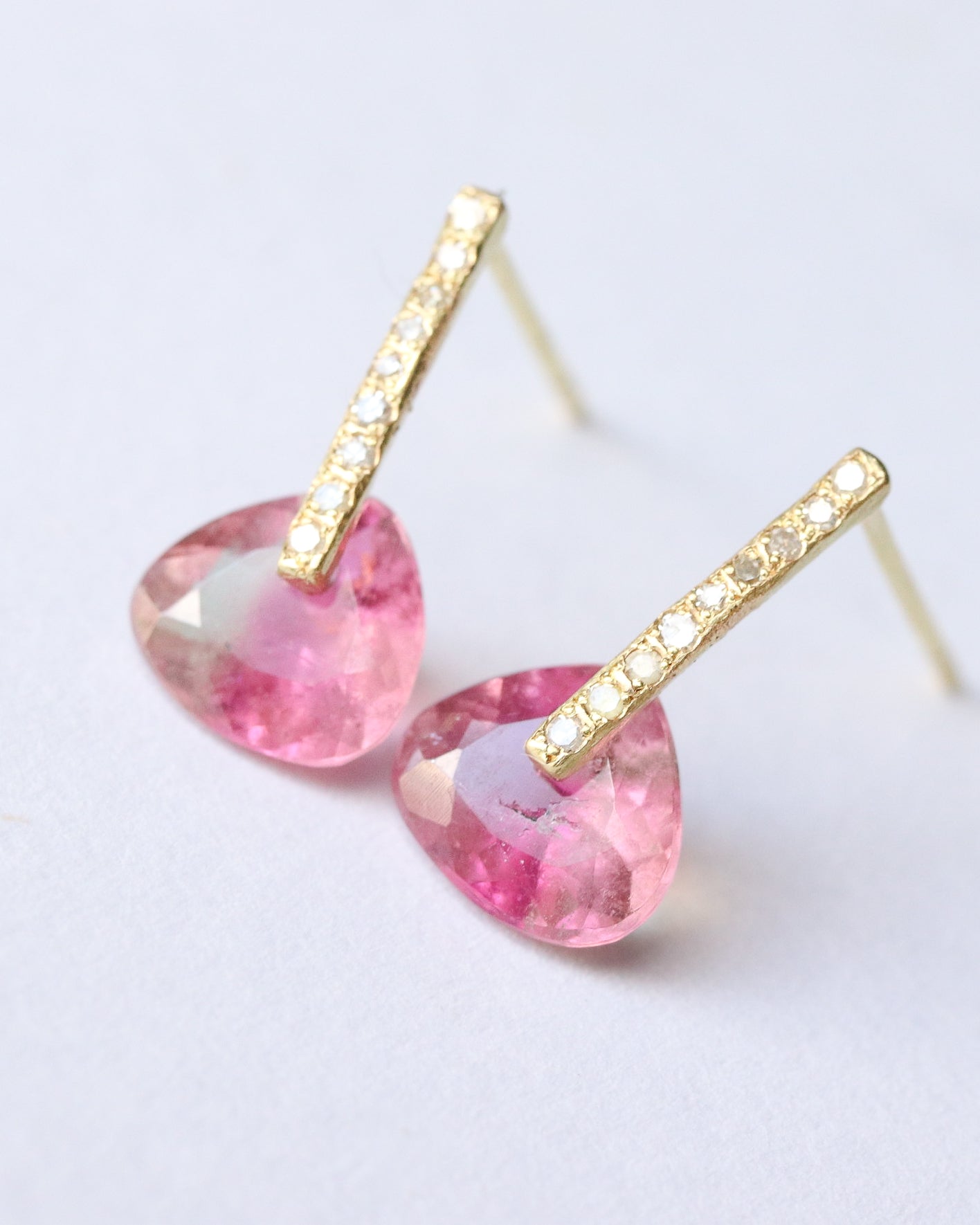 Hibiki Stone Pierced Earring - Bicolor Tourmaline / Diamond -