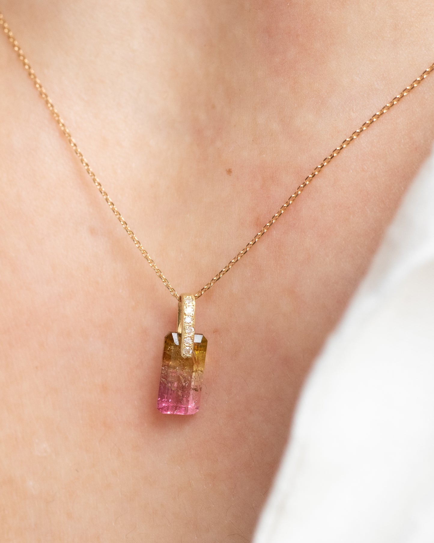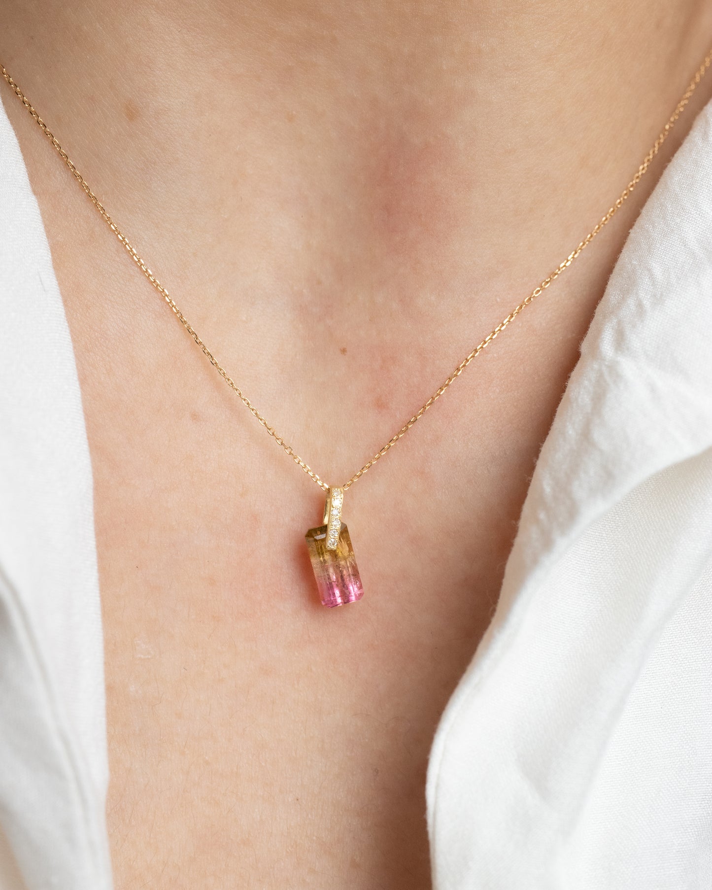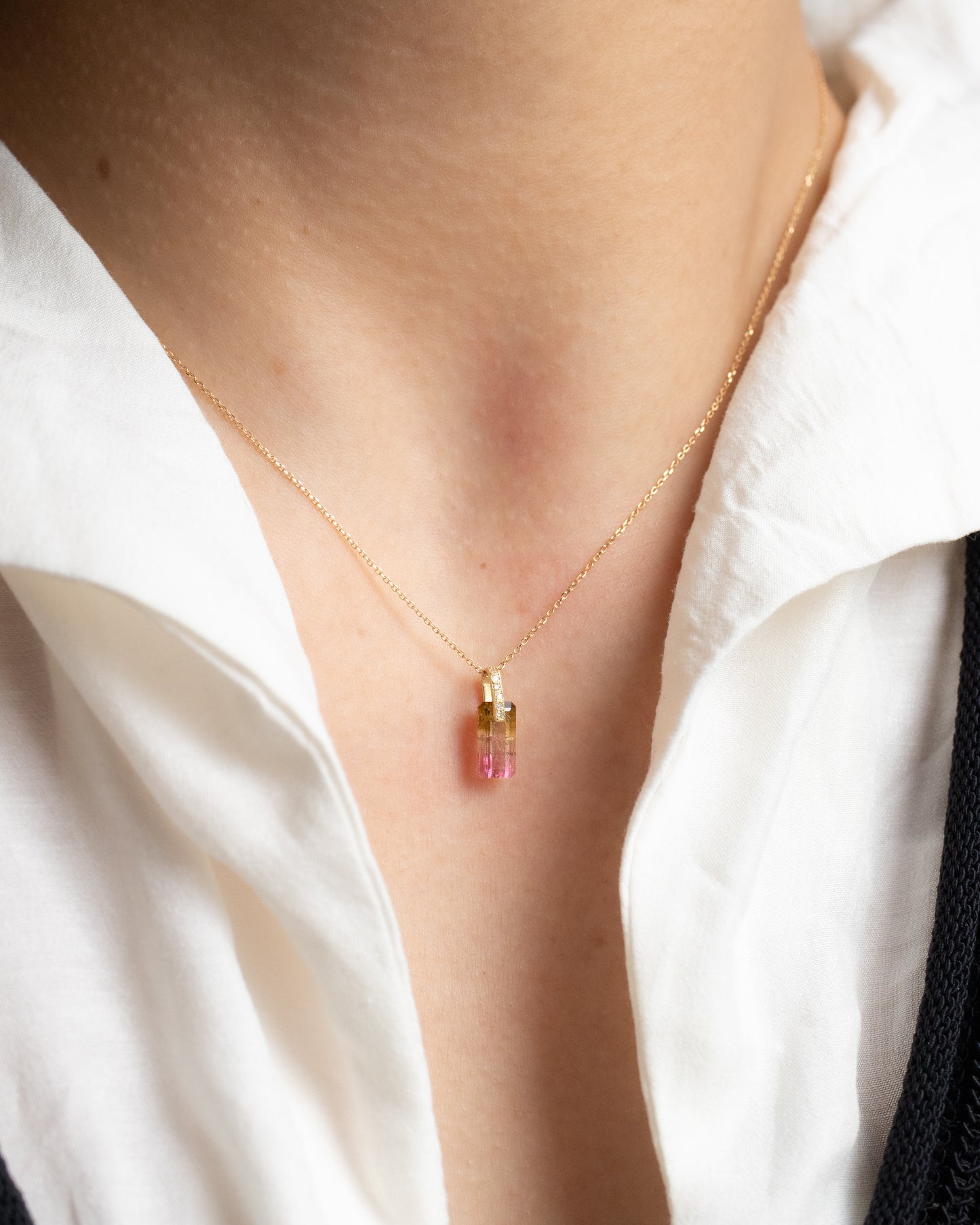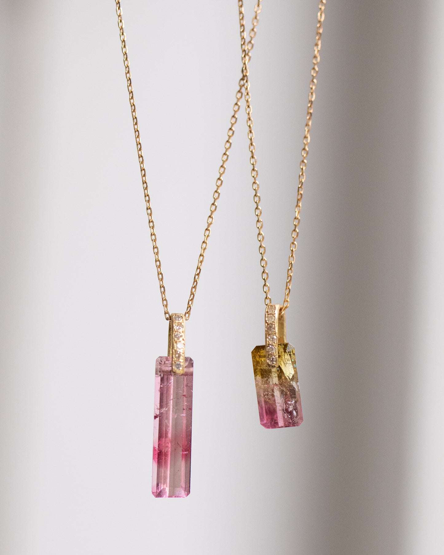 Hibiki Stone Necklace - Bicolor Tourmaline / Diamond -