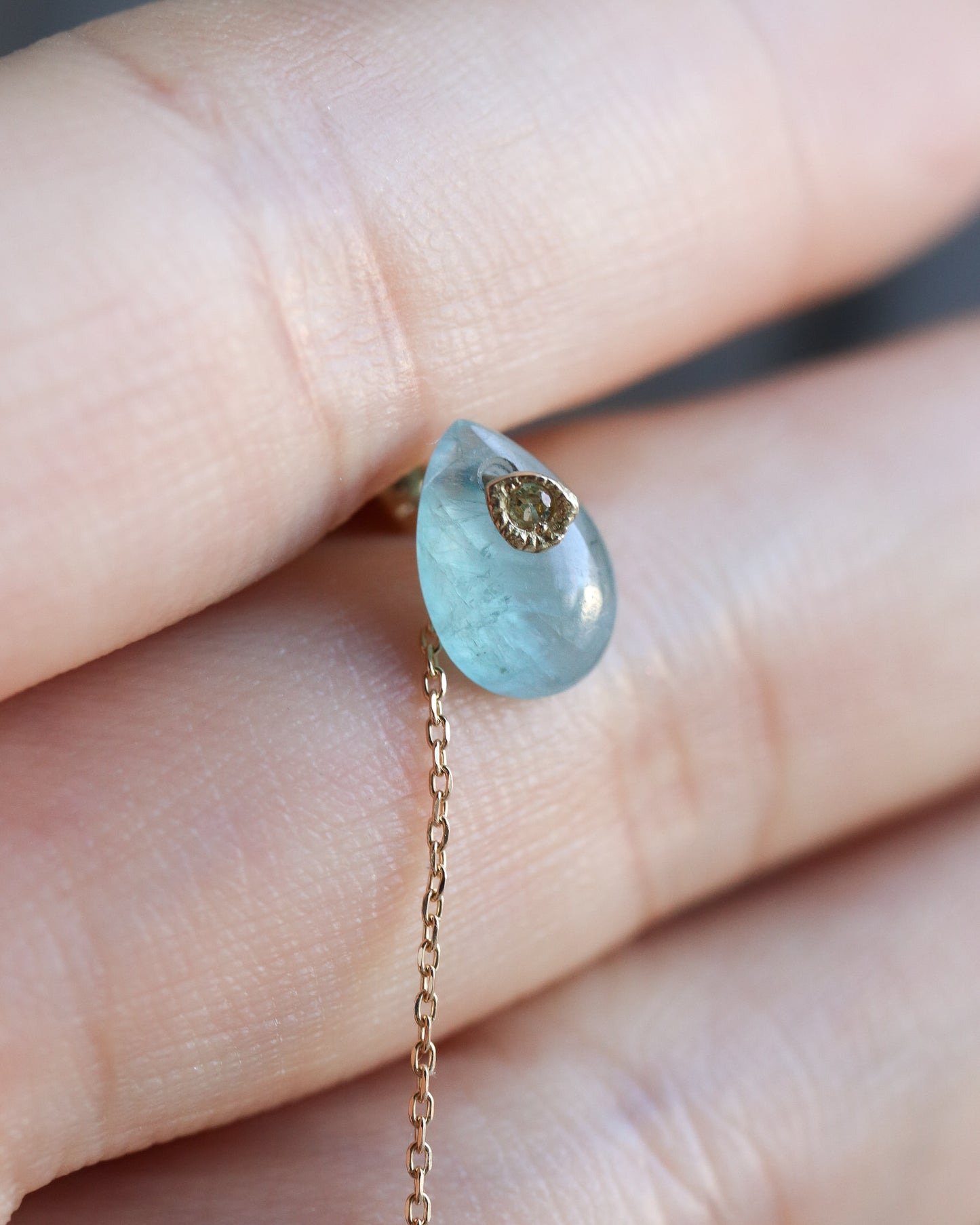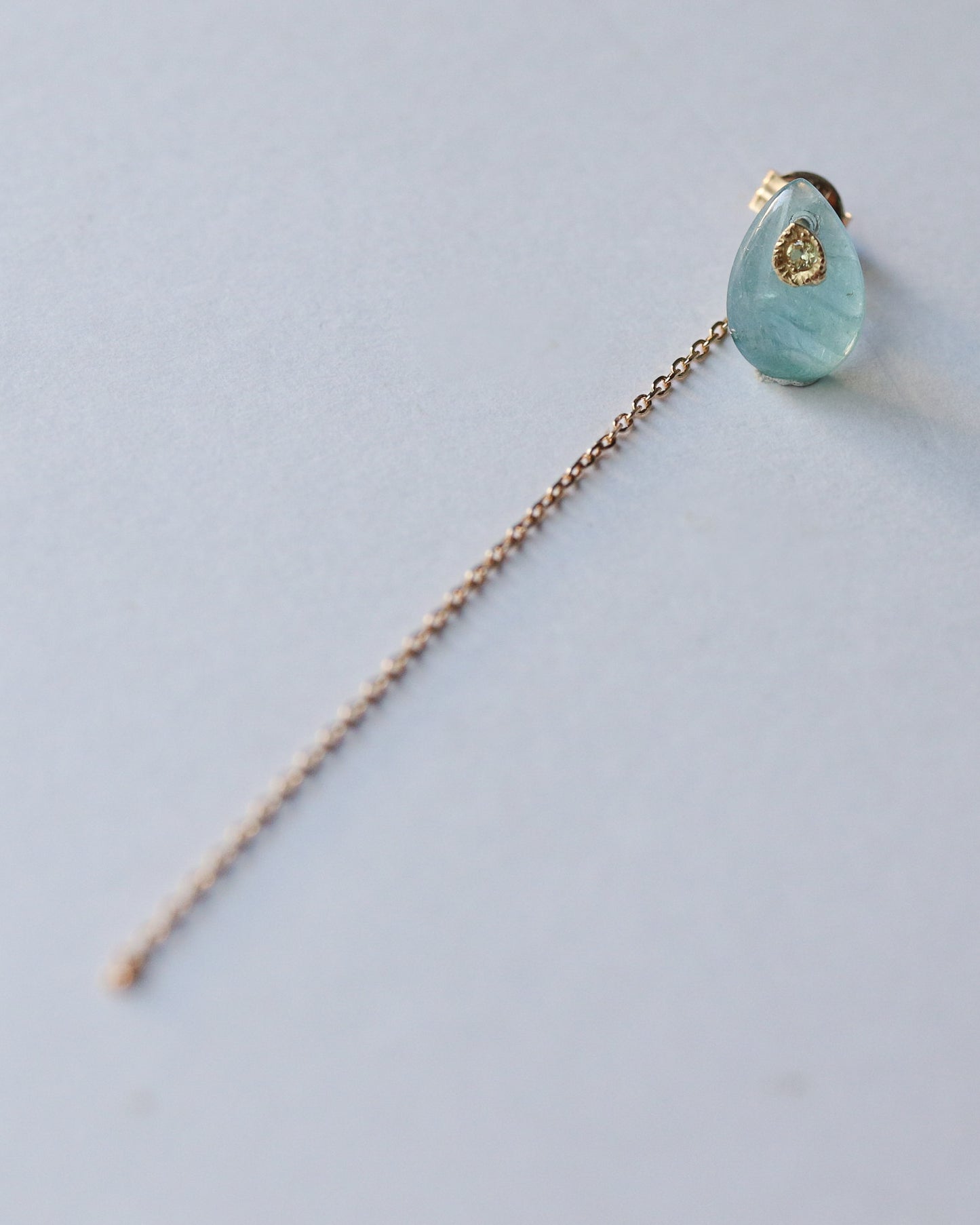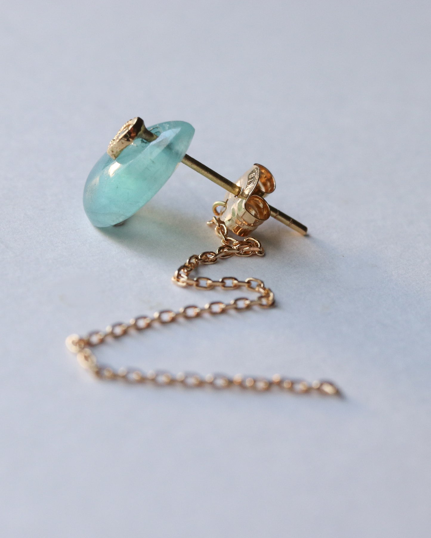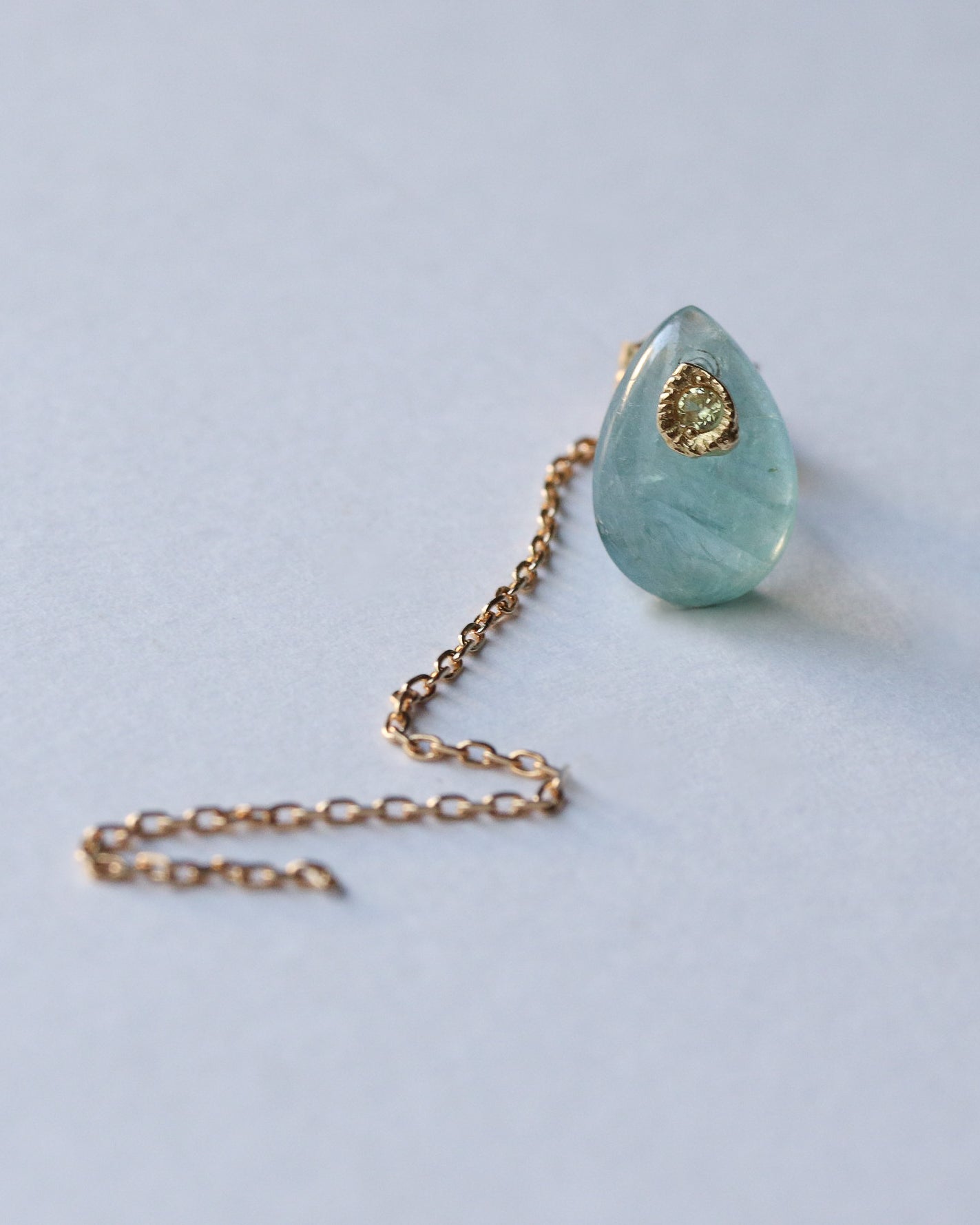 石の取り外しが可能で、ポストとチェーン付きのキャッチだけでシンプルに使用したり、チェーン付きのキャッチを他のピアスにも使用できる汎用性の高いデザインです。
