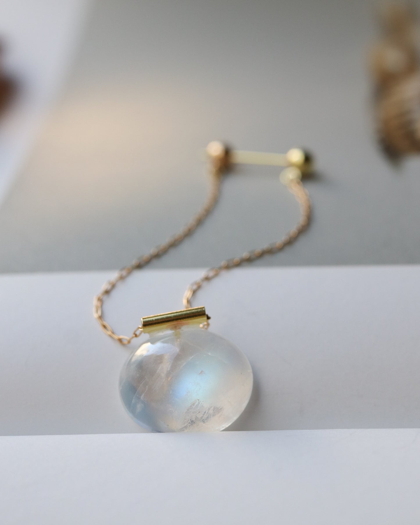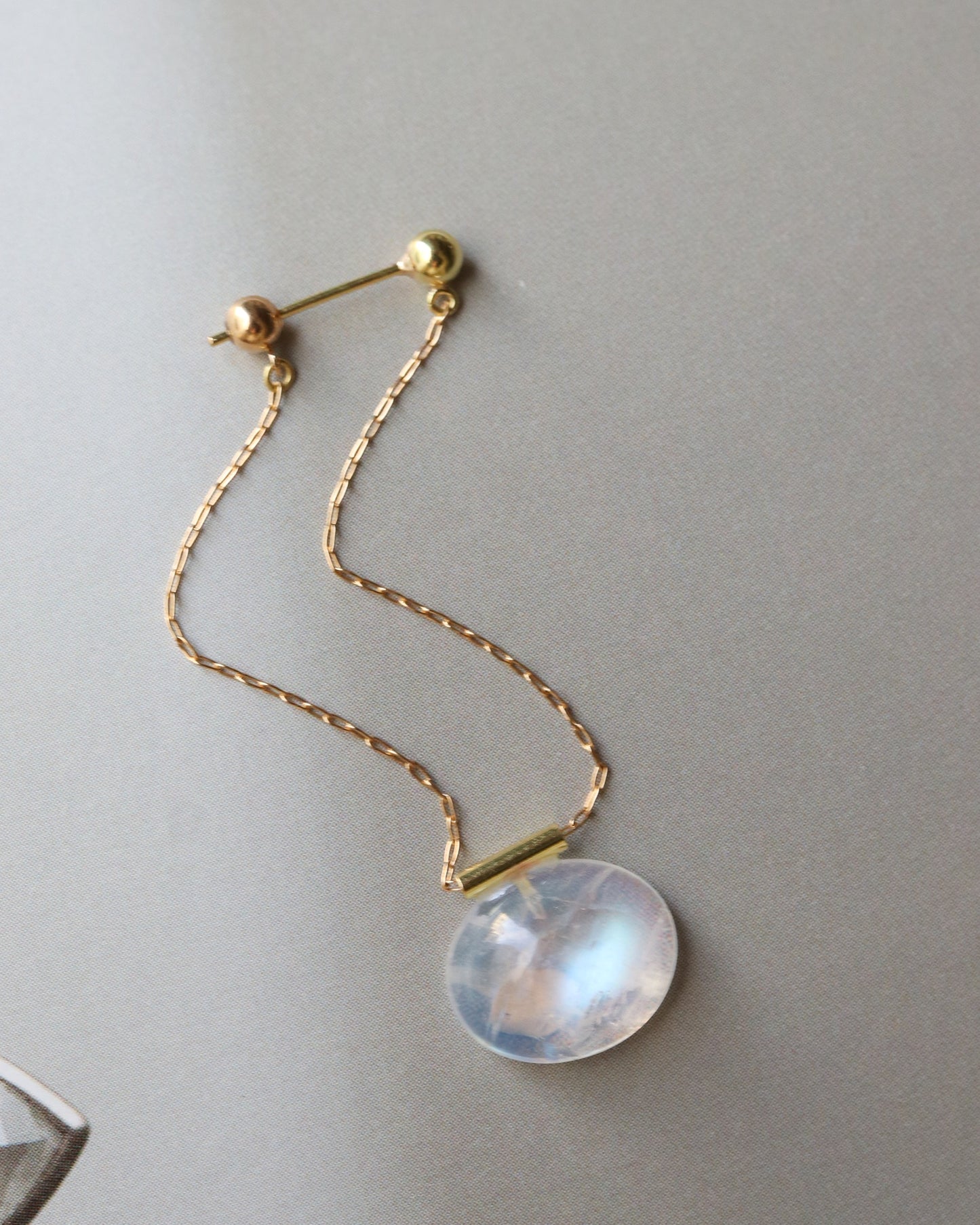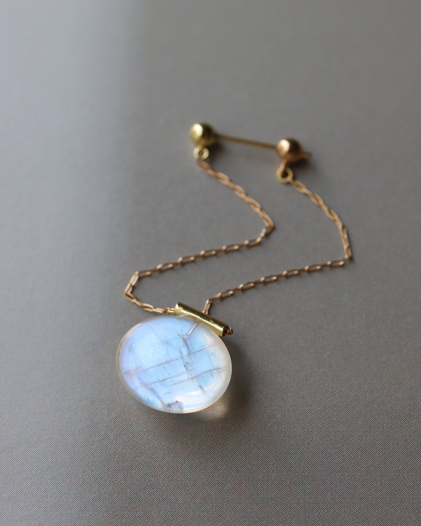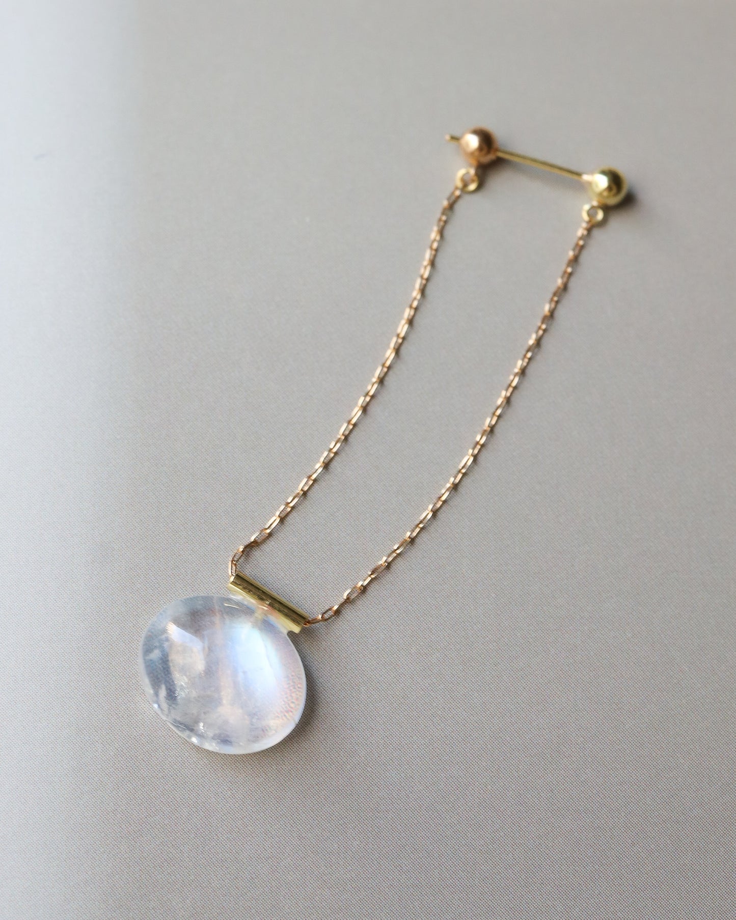 Pipe Pierced Earring - Rainbow Moon Stone -