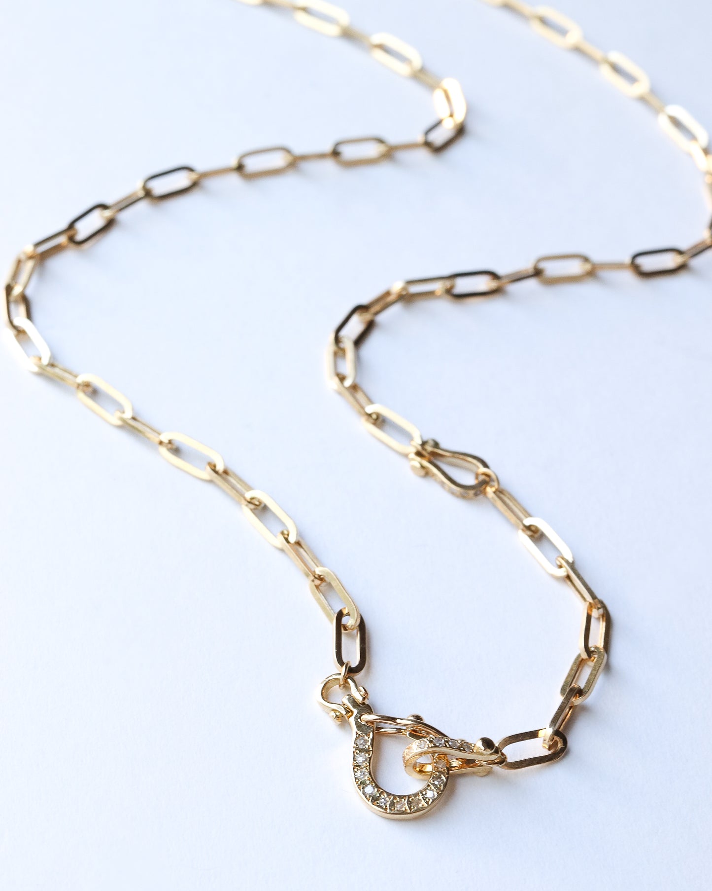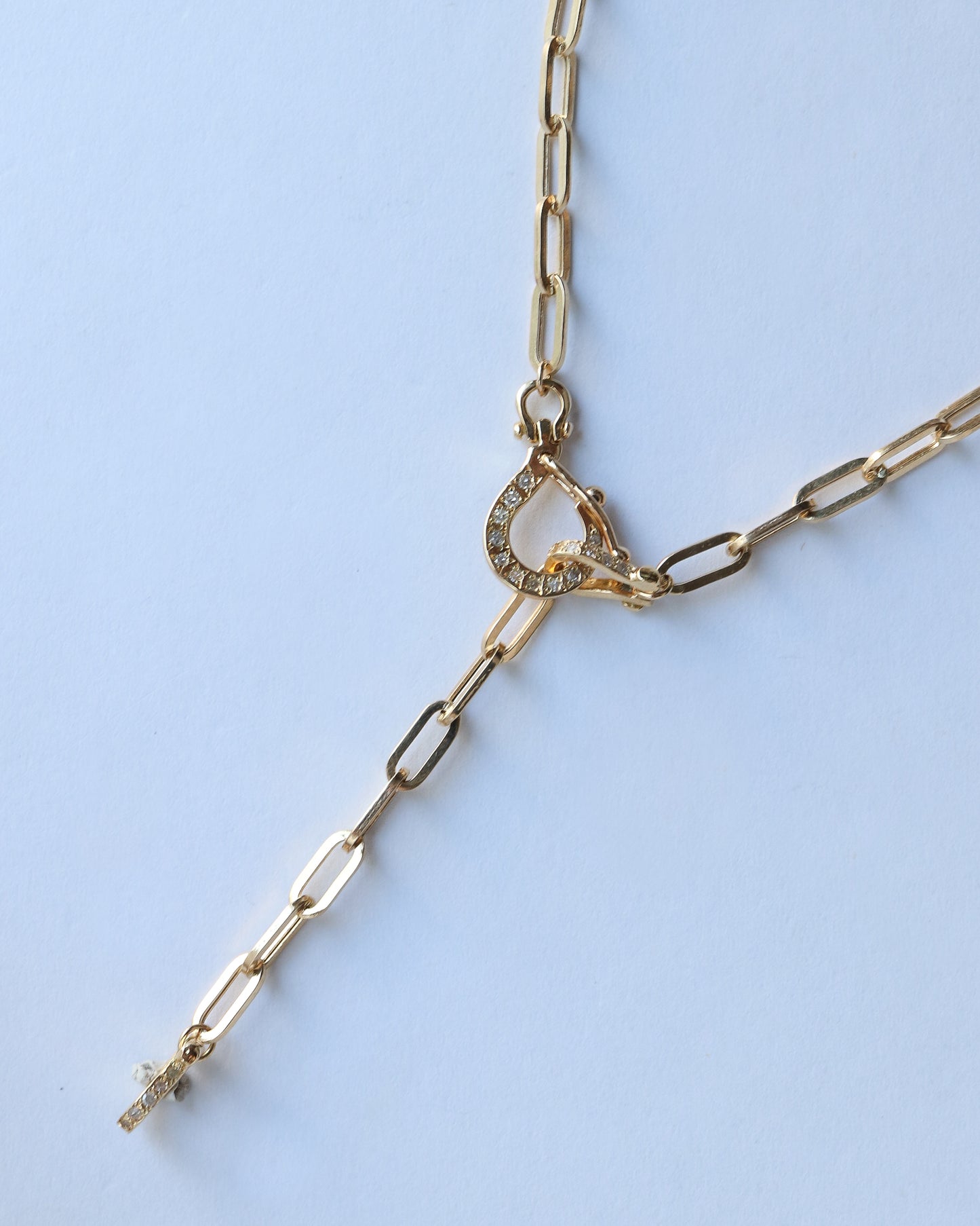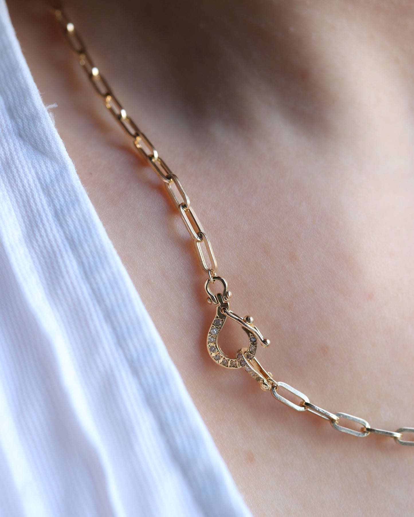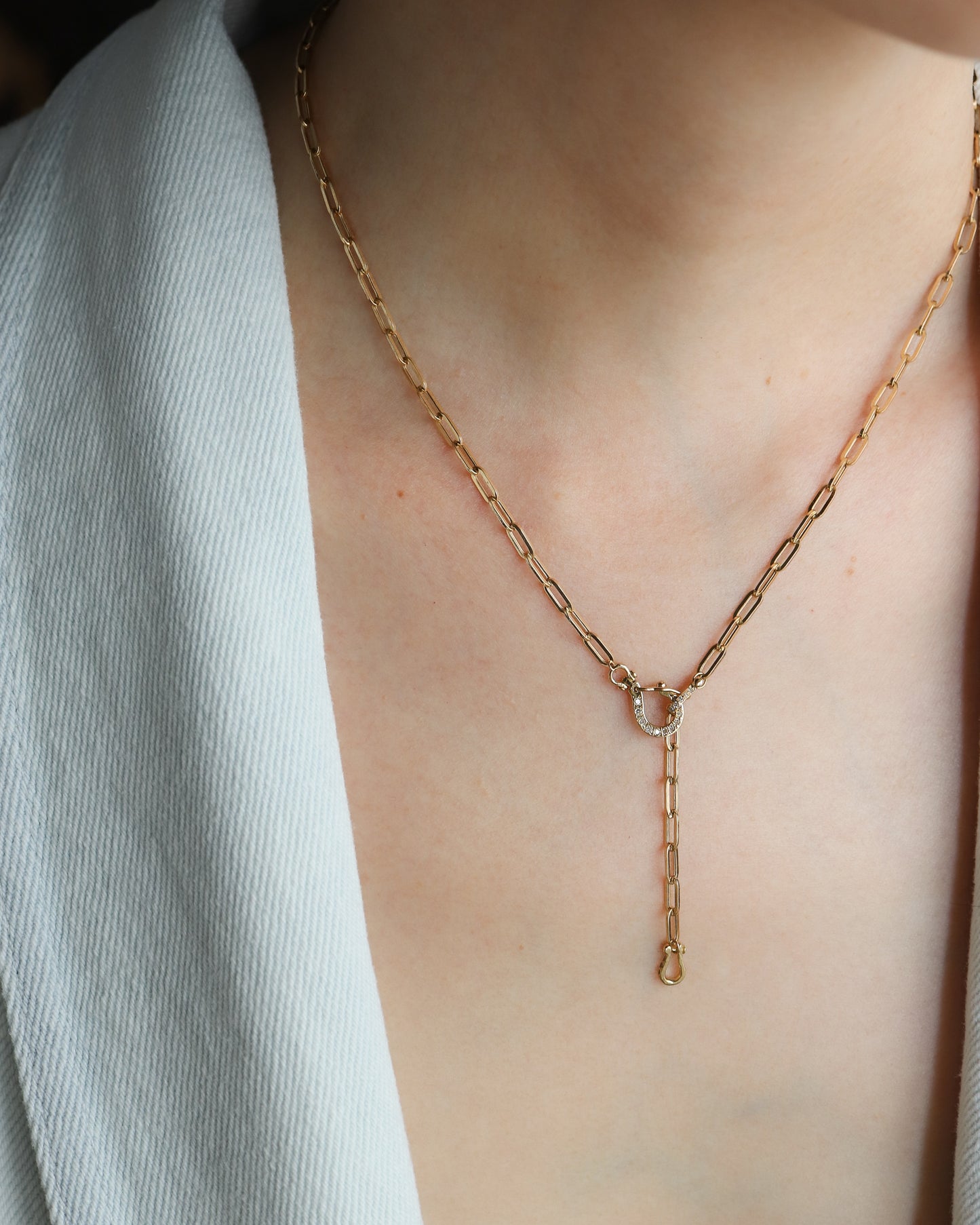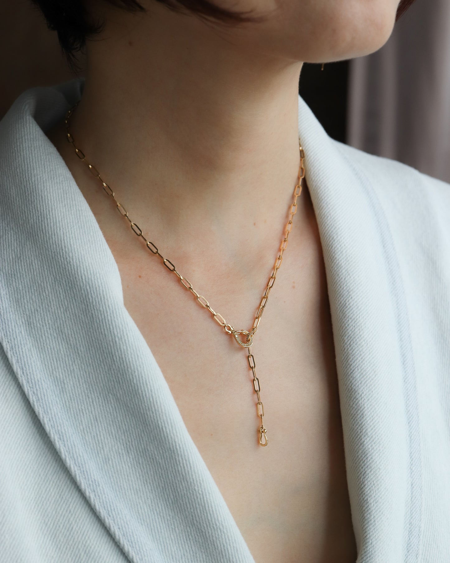 Link Necklaceは通常のネックレスに見られる引き輪パーツを設けず、MONAKAオリジナルの開閉式モチーフをセッティング。