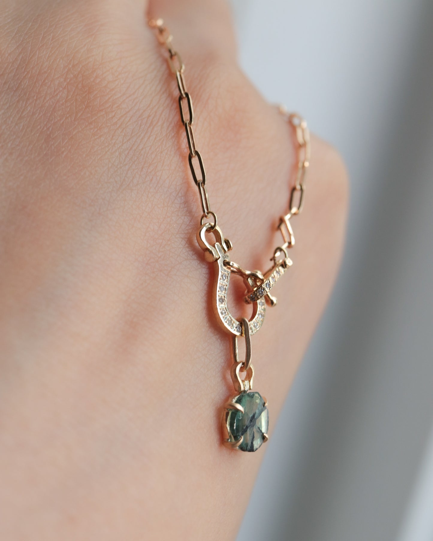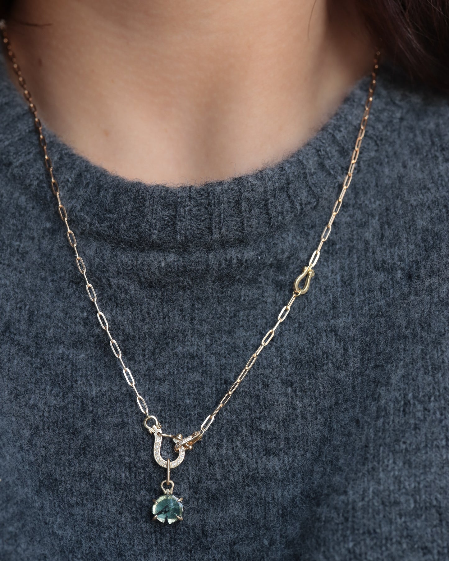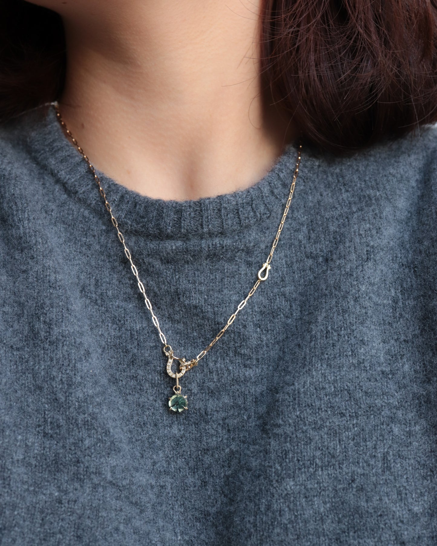 HorseShoe Prong Necklace - Trapiche Emerald -