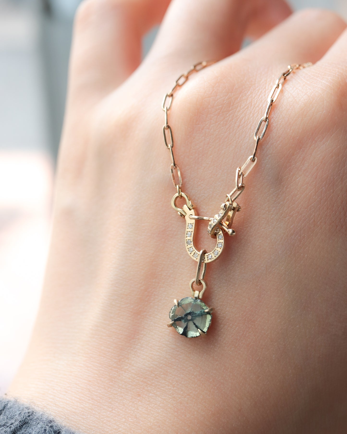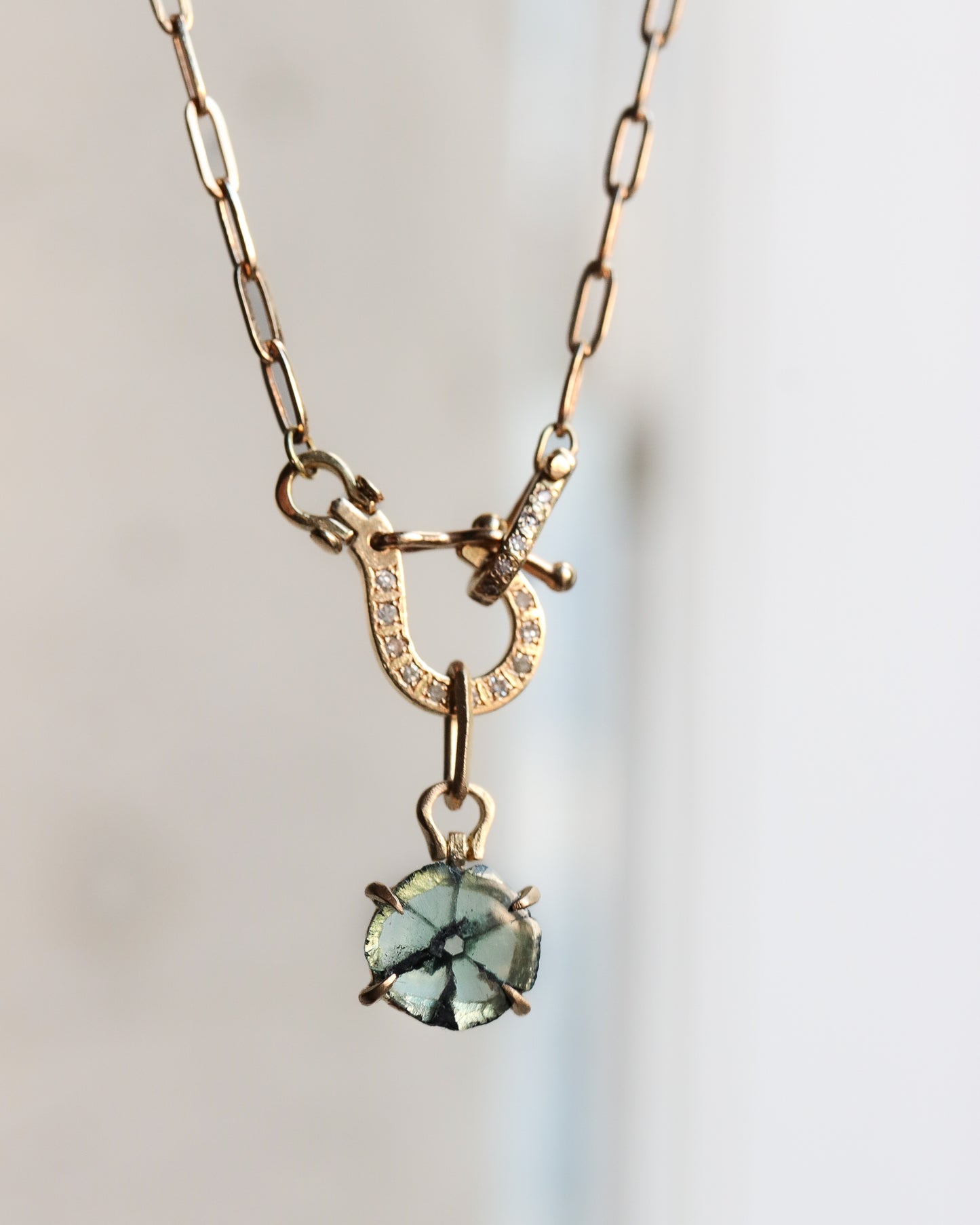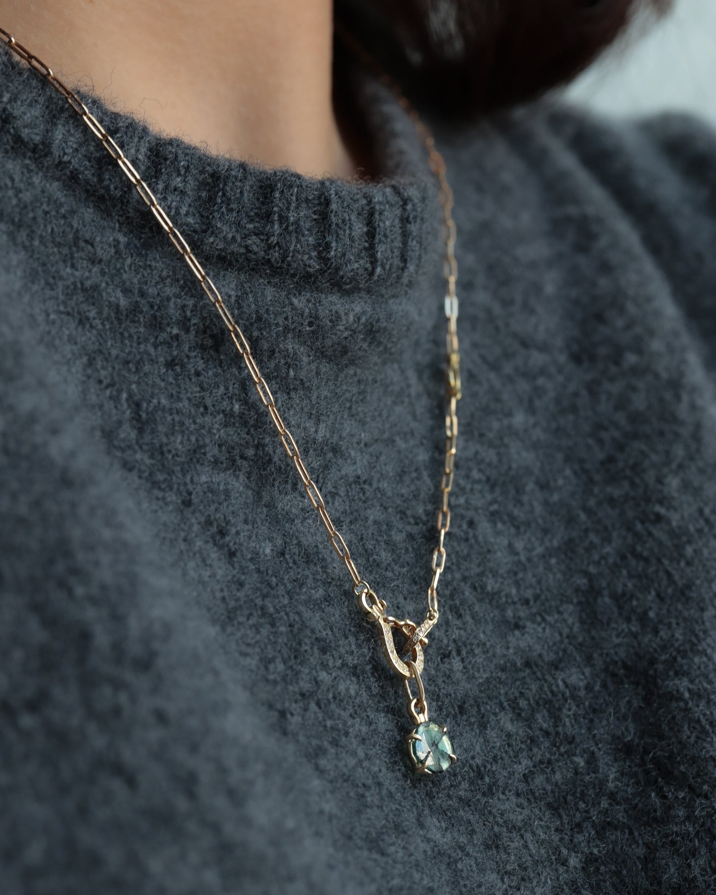 HorseShoe Prong Necklace - Trapiche Emerald -