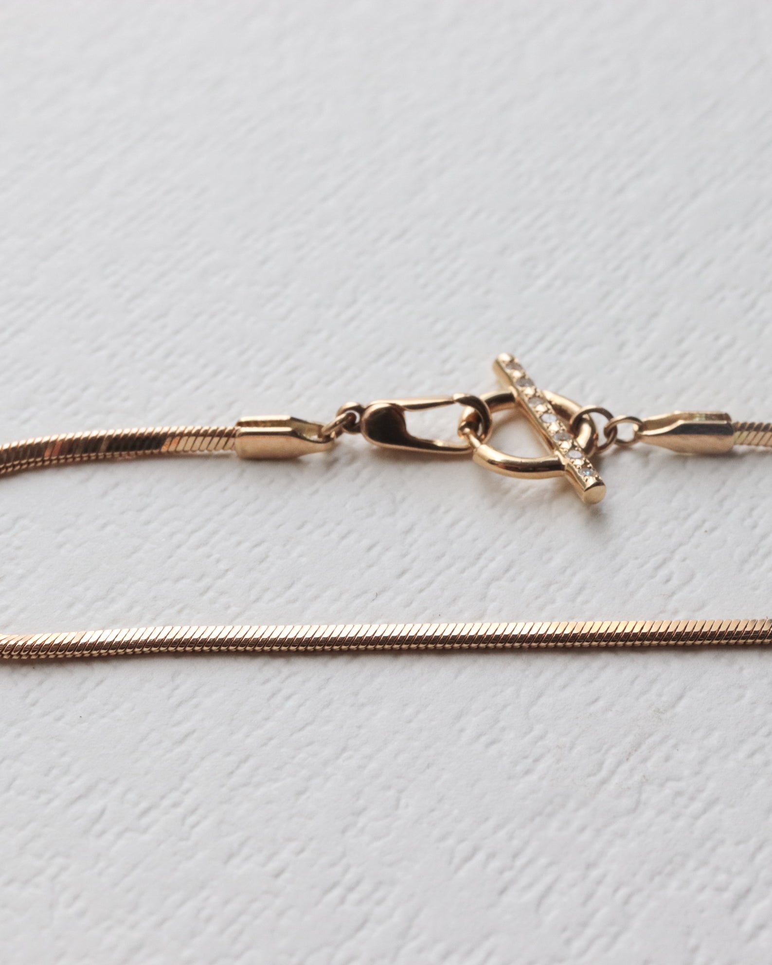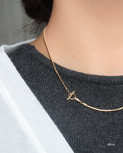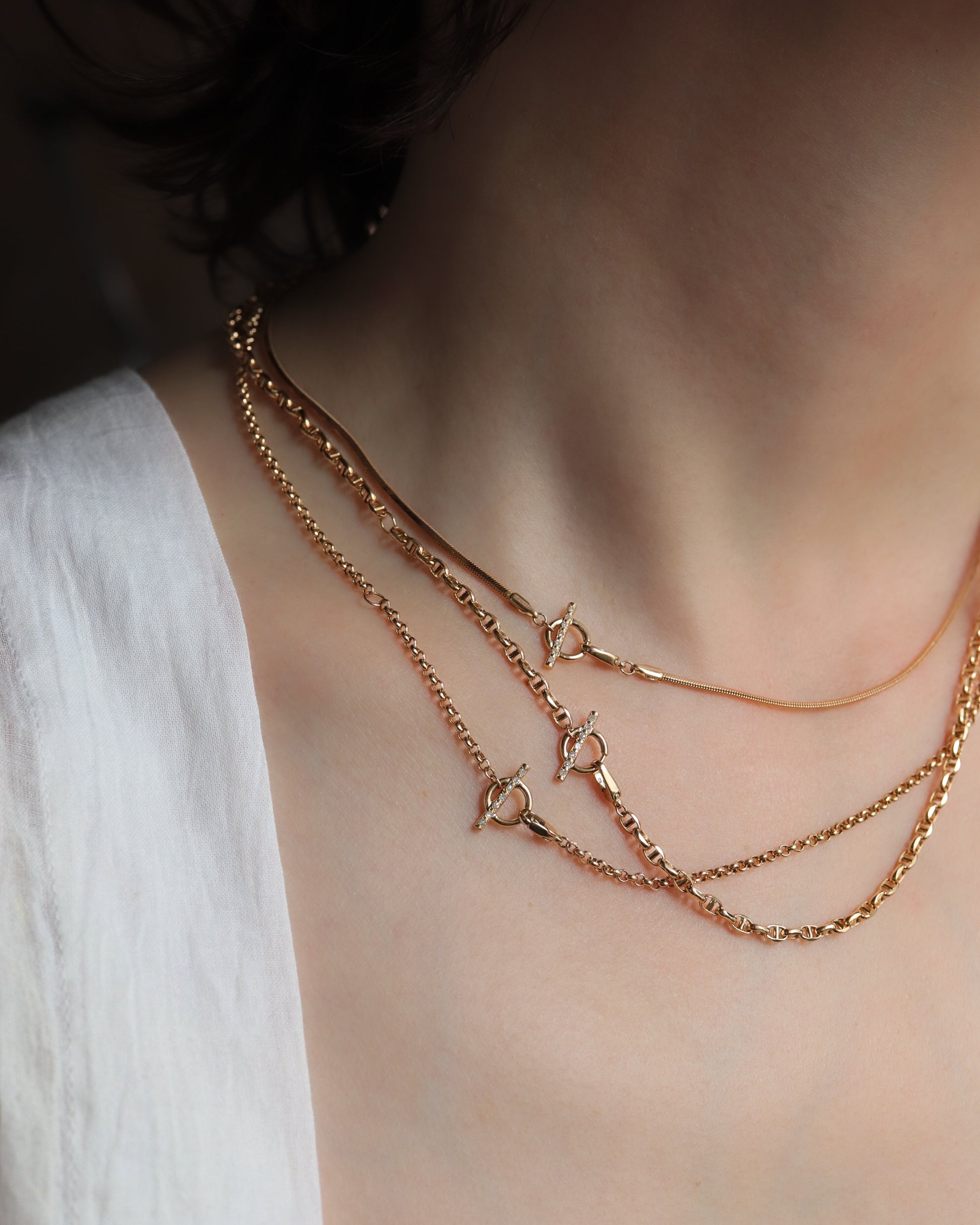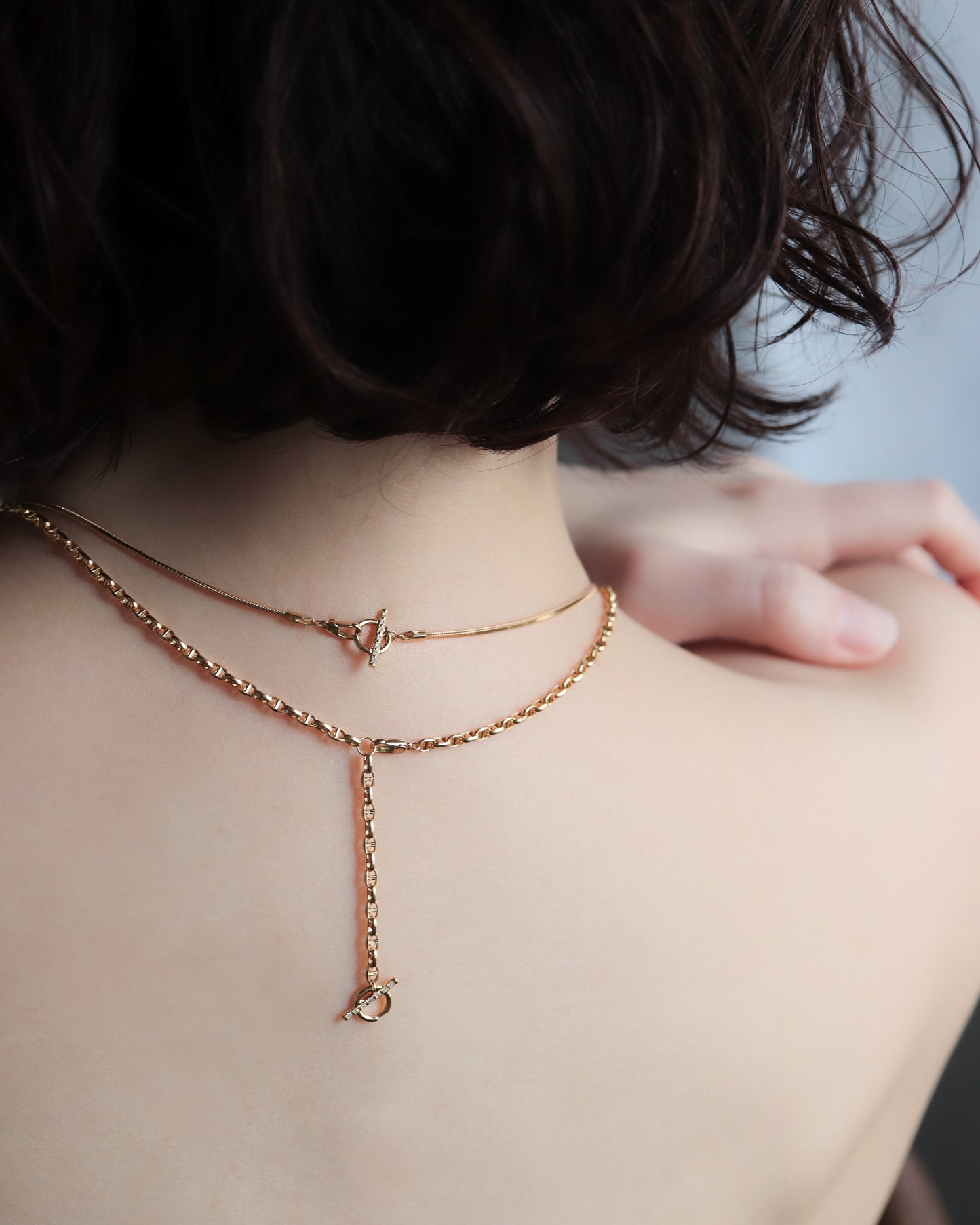 マンテルの本来持つクラスプとしての機能ではなく、デザイン性を重視してモチーフとして使用したシリーズ。チェーンの種類は、スネーク、ハーフランド、アンカーの3種類展開です。それぞれモチーフ部分にキラキラと輝くメレダイアを留め、煌びやかな中にもそっと佇む優しさを表現いたしました。