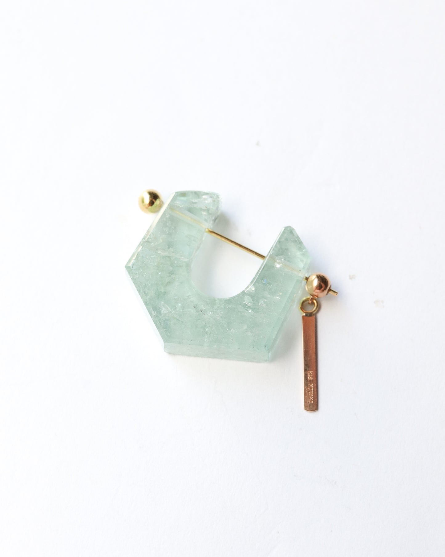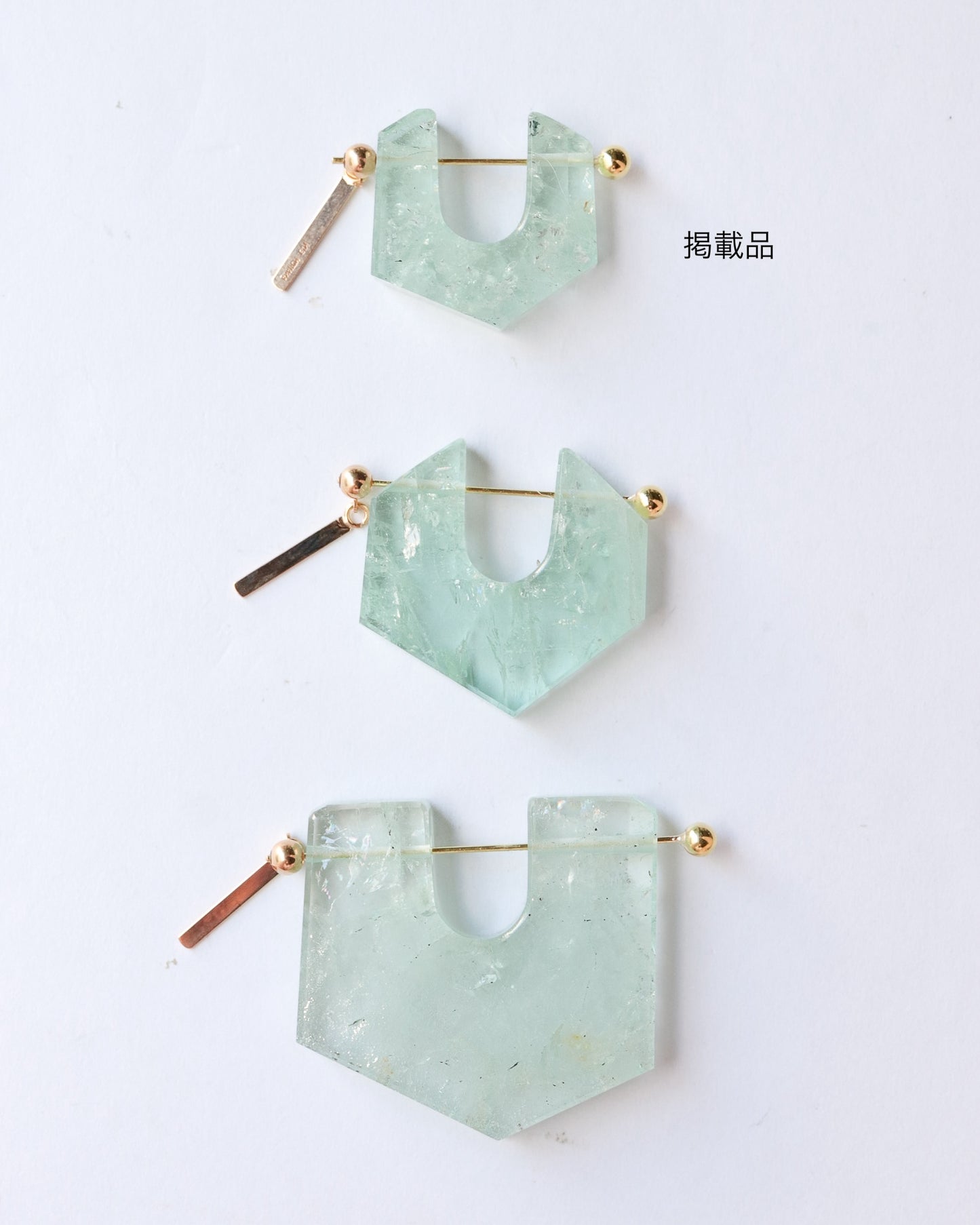 天然石の原石をそのままピアスにしたデザインは、同じ形が無くすべてが1点物。U字の石を耳たぶを挟むようにしてピアスのポストバーを通し、横顔も印象的に演出します。ポストを通す穴の位置を変えて、表裏どちらの面もお楽しみください。