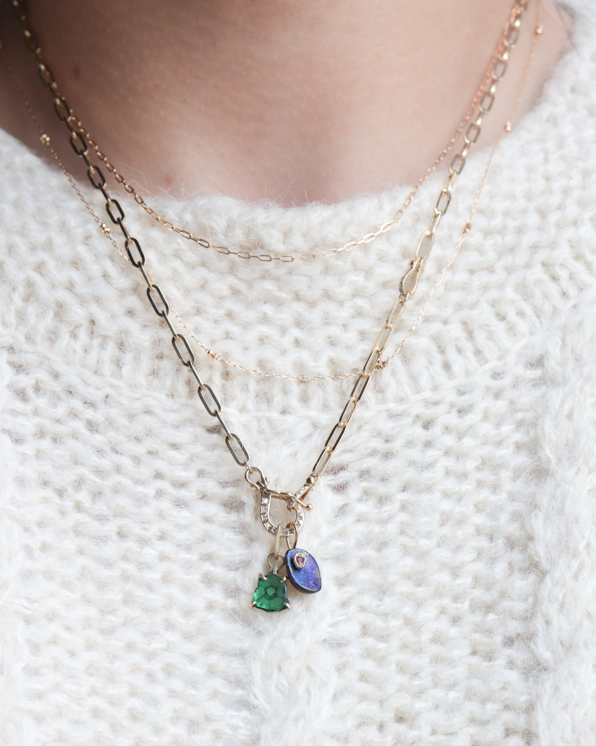 HorseShoe Prong Necklace - Trapiche Emerald -