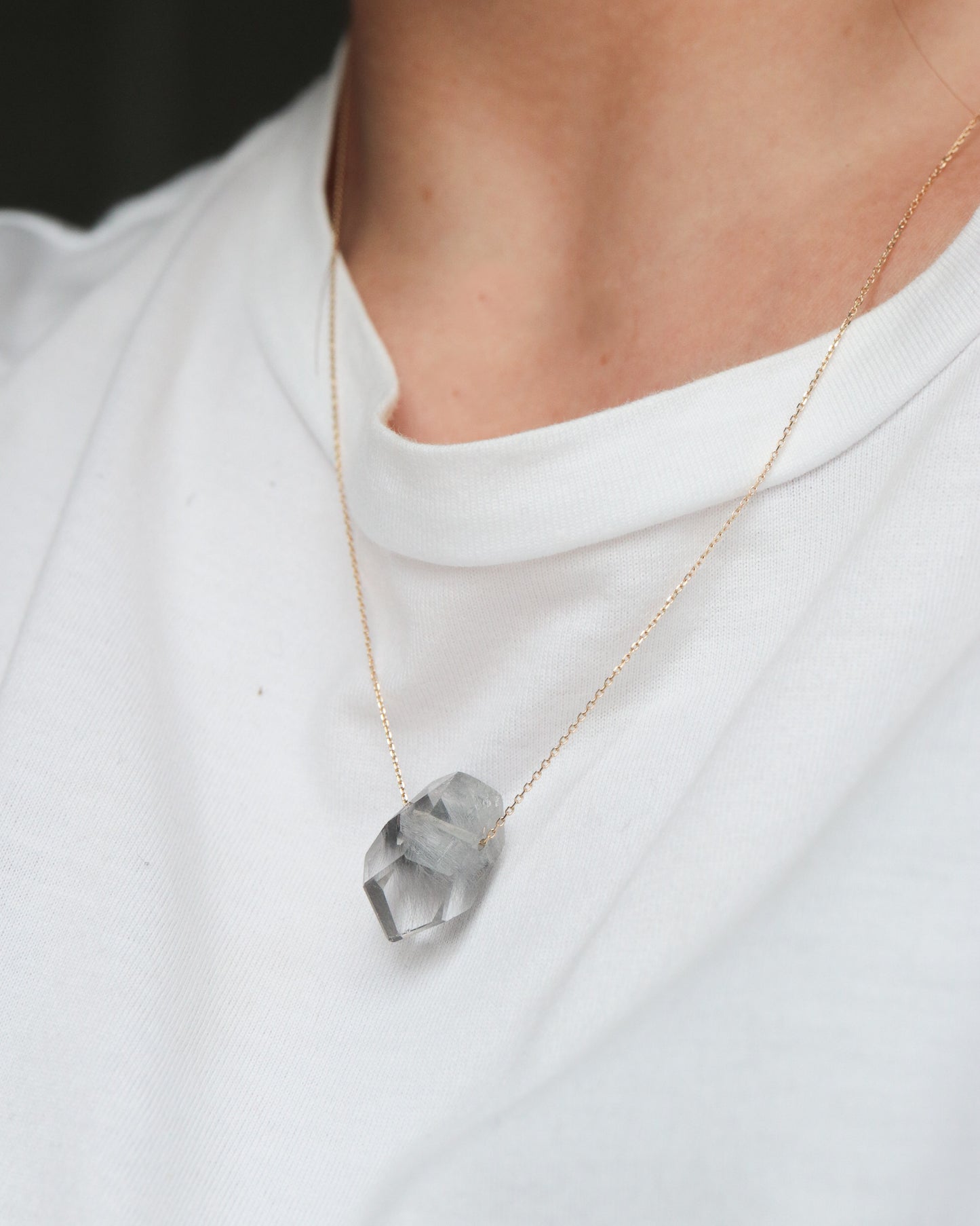 天然石を贅沢な大きさで使用したRockネックレス。クラックやインクルージョンをその石の個性と捉え、石枠を使用せずに最大限魅力を引き出したデザインです。チェーンにはさりげなくブランドプレートが付いています。45cm部分にアジャスターカンがつきます。