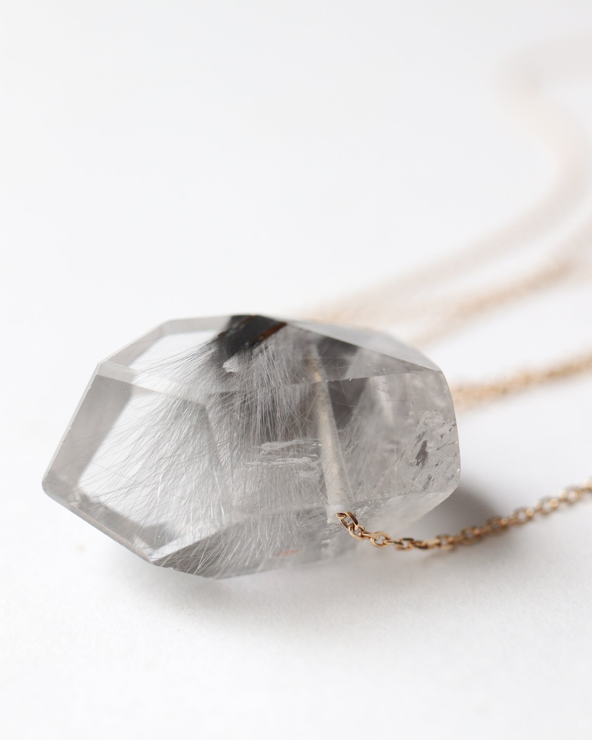 Product Name : Rock Necklace - Platinum Rutilated Quartz -