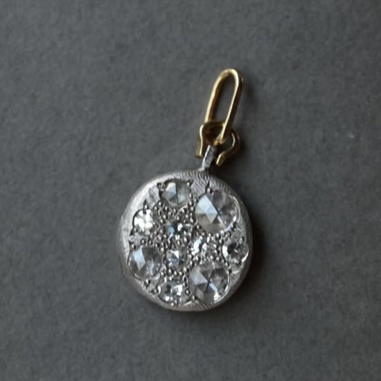 こちらのネックレストップは、実在のアンティークコインから型を取りお仕立てしております。ダイアモンドを贅沢にセッティングした面、蜂モチーフの面、リバーシブルでお楽しみいただけます。