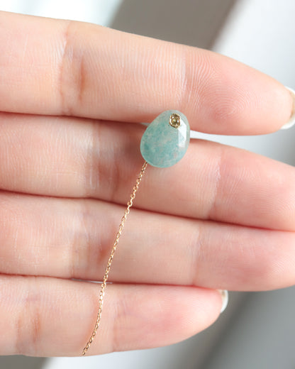 天然石に穴を開けてピアスのポストを通したFlat Pierced