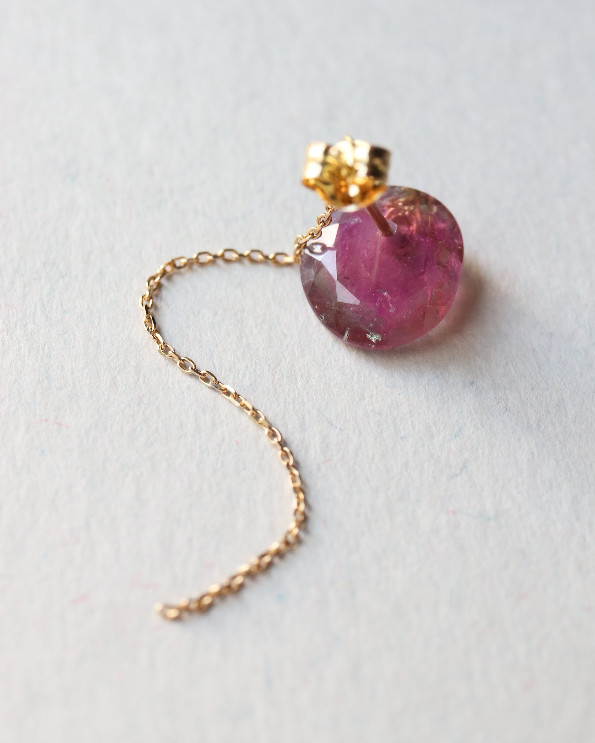 石の取り外しが可能で、ポストとチェーン付きのキャッチだけでシンプルに使用したり、チェーン付きのキャッチを他のピアスにも使用できる汎用性の高いデザインです。