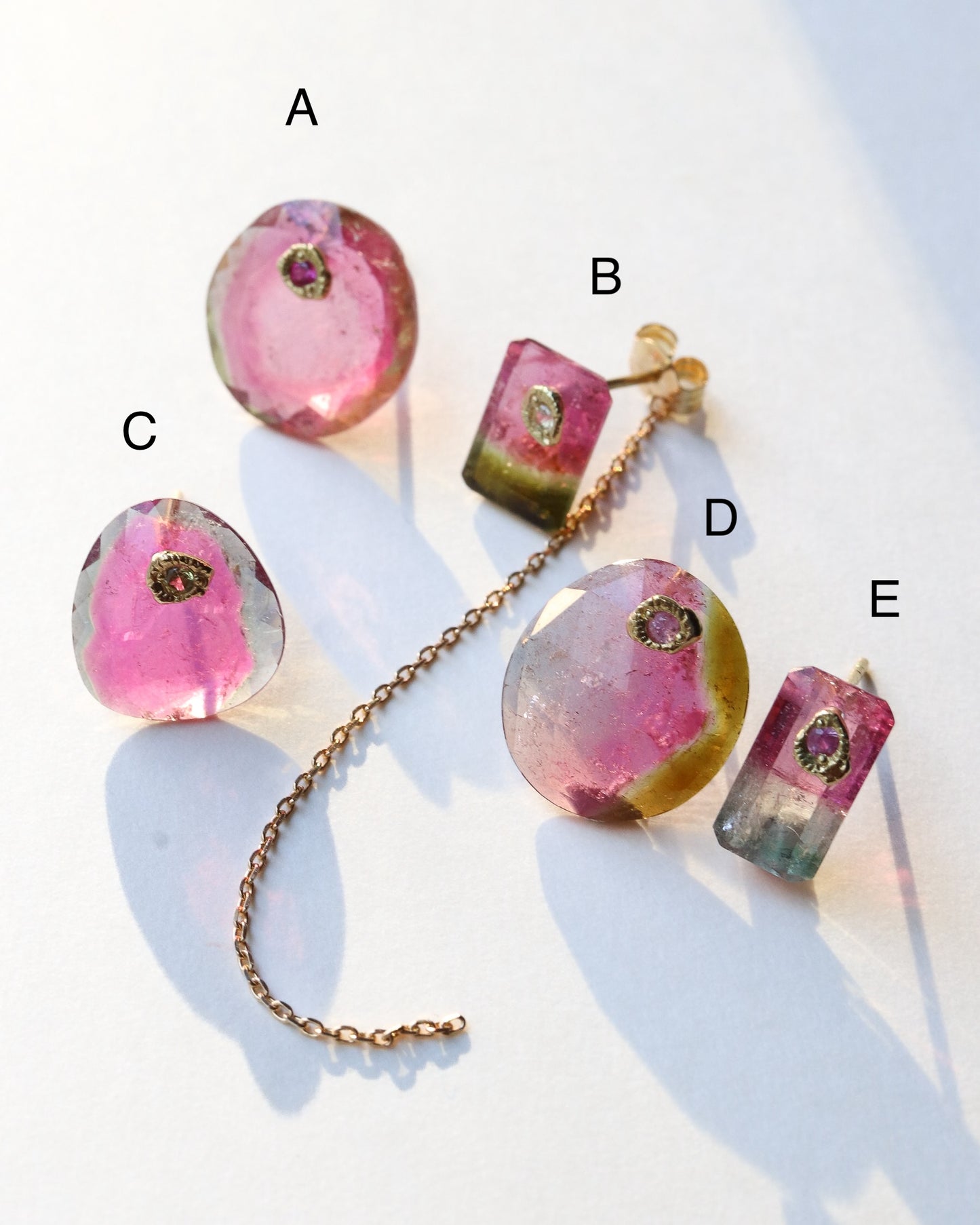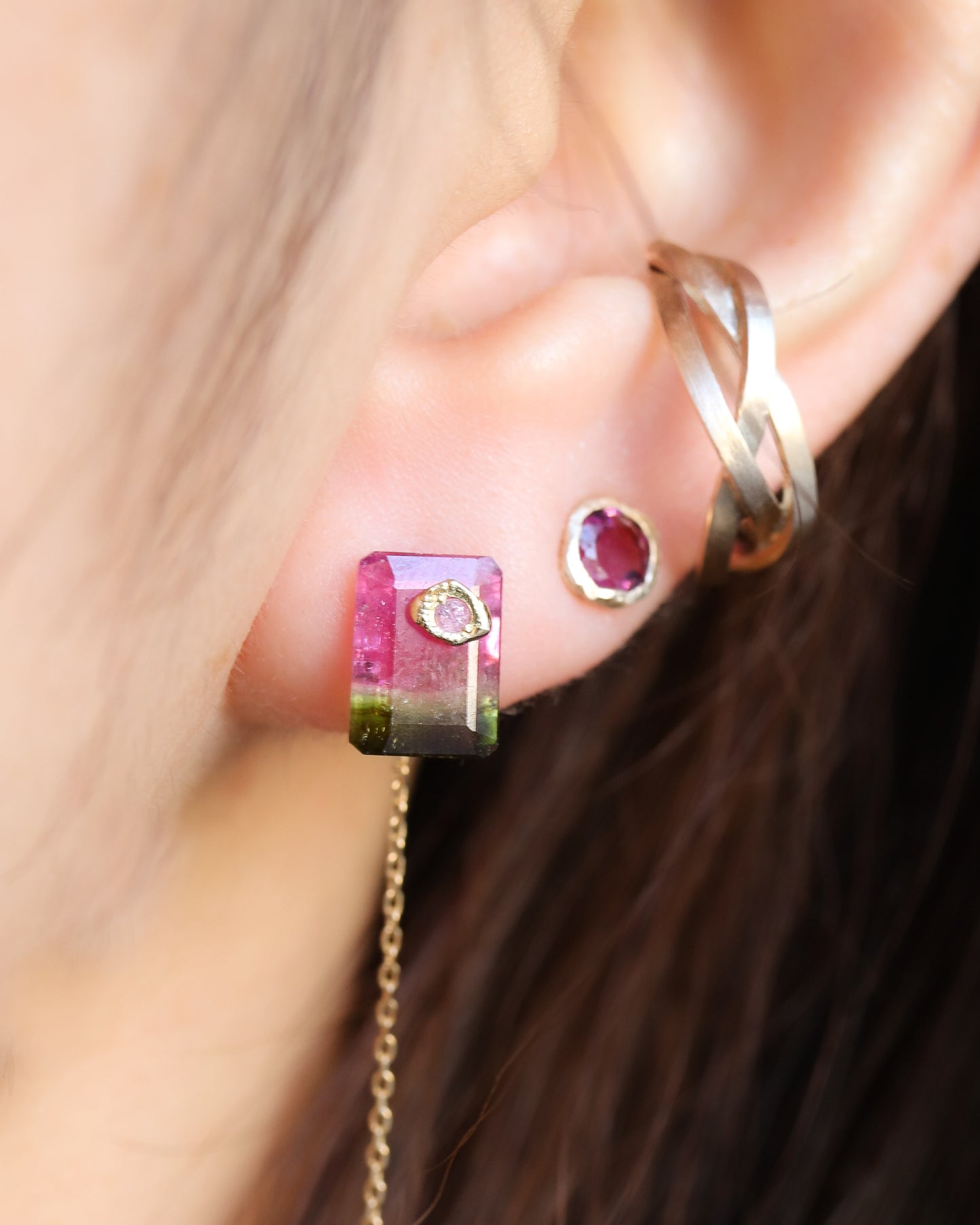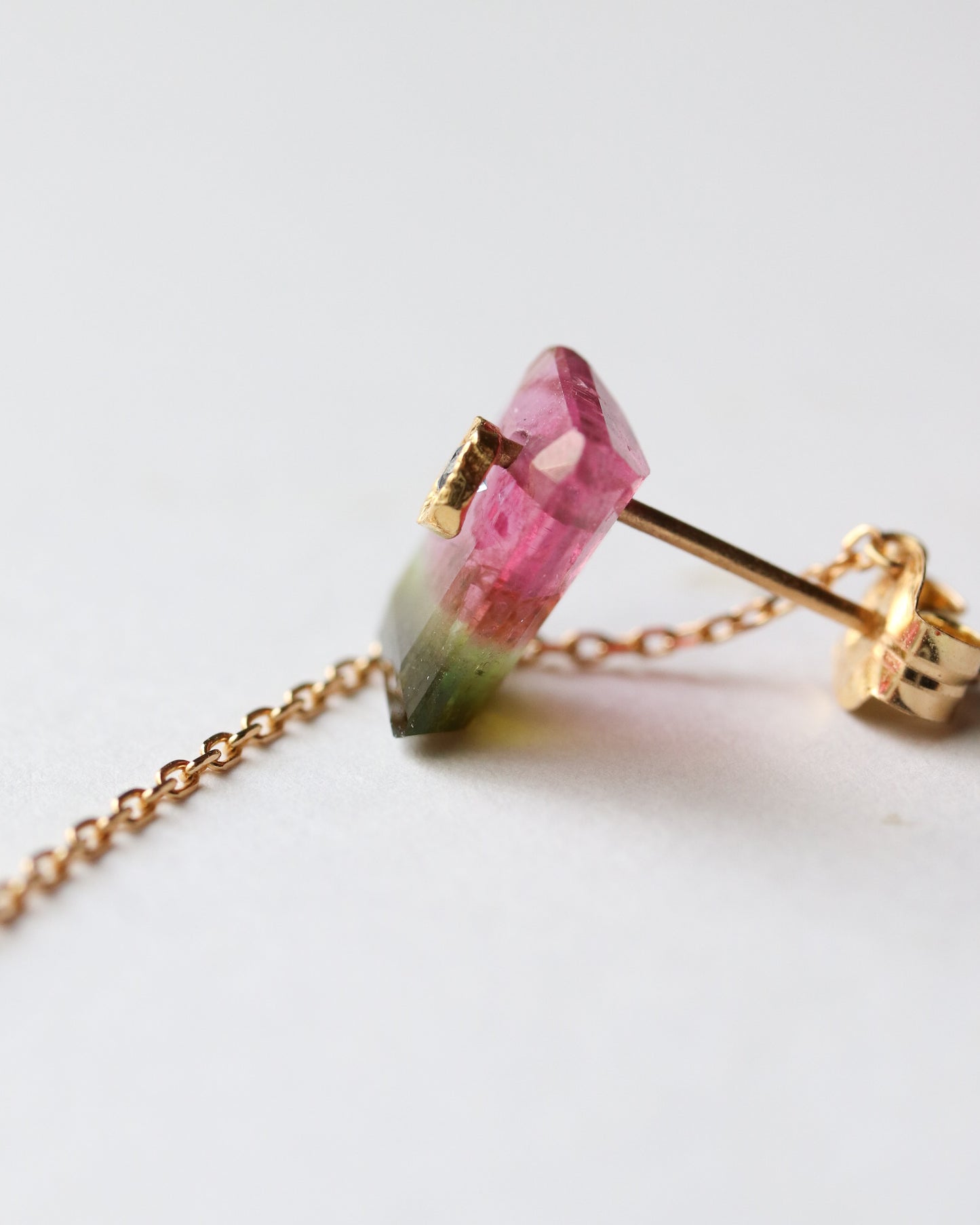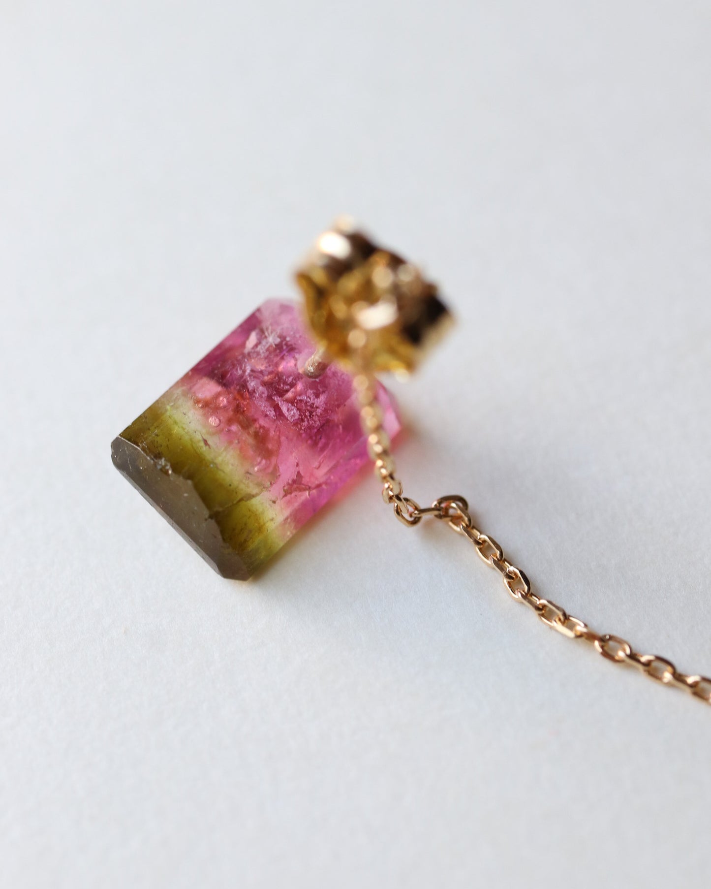 Flat Pierced Earring - Bicolor Tourmaline - B