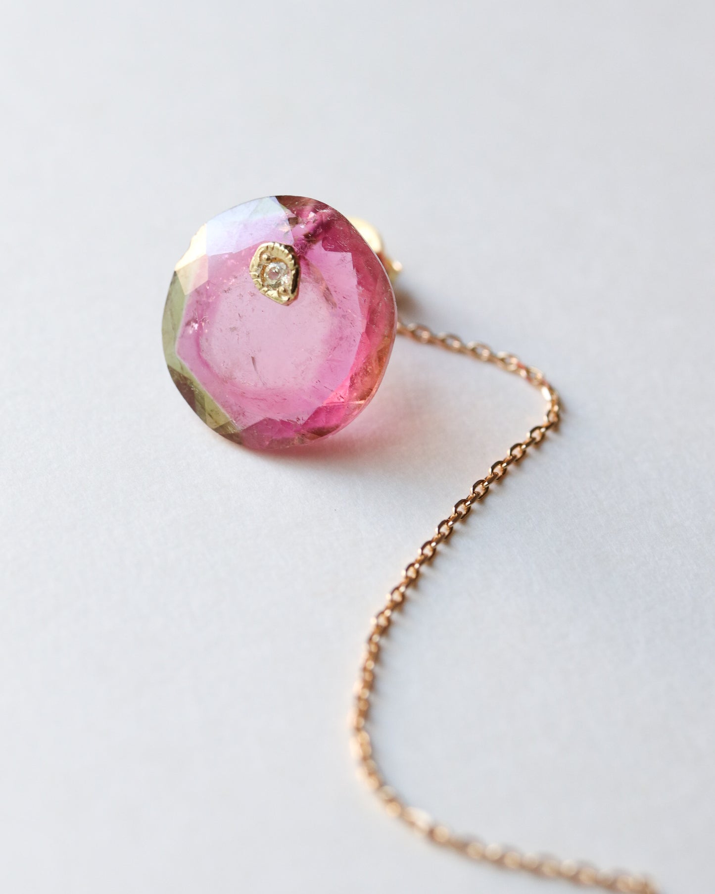 Flat Pierced Earring - Bicolor Tourmaline - A
