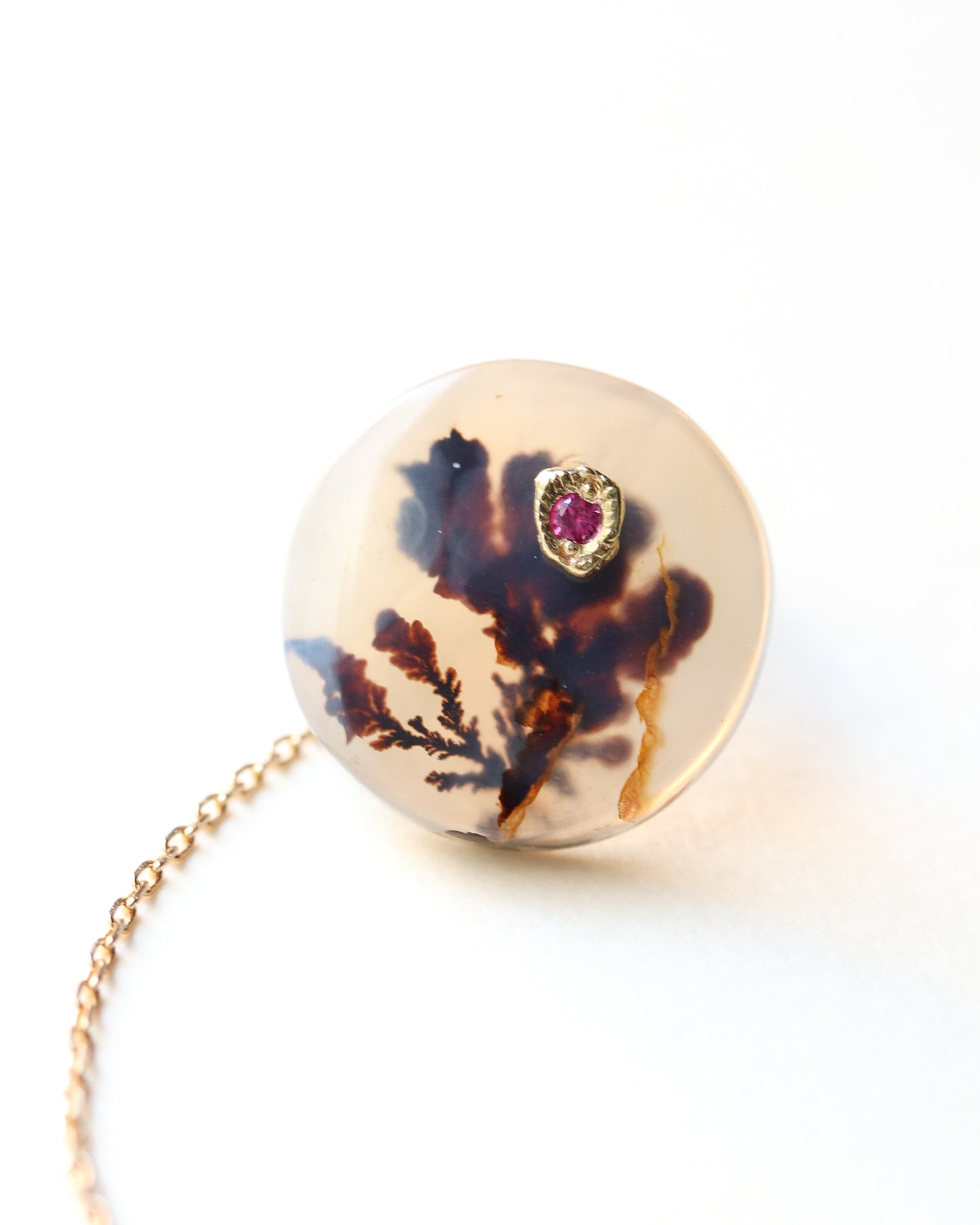Product Name : Flat Pierced Earring - Dendritic Quartz -