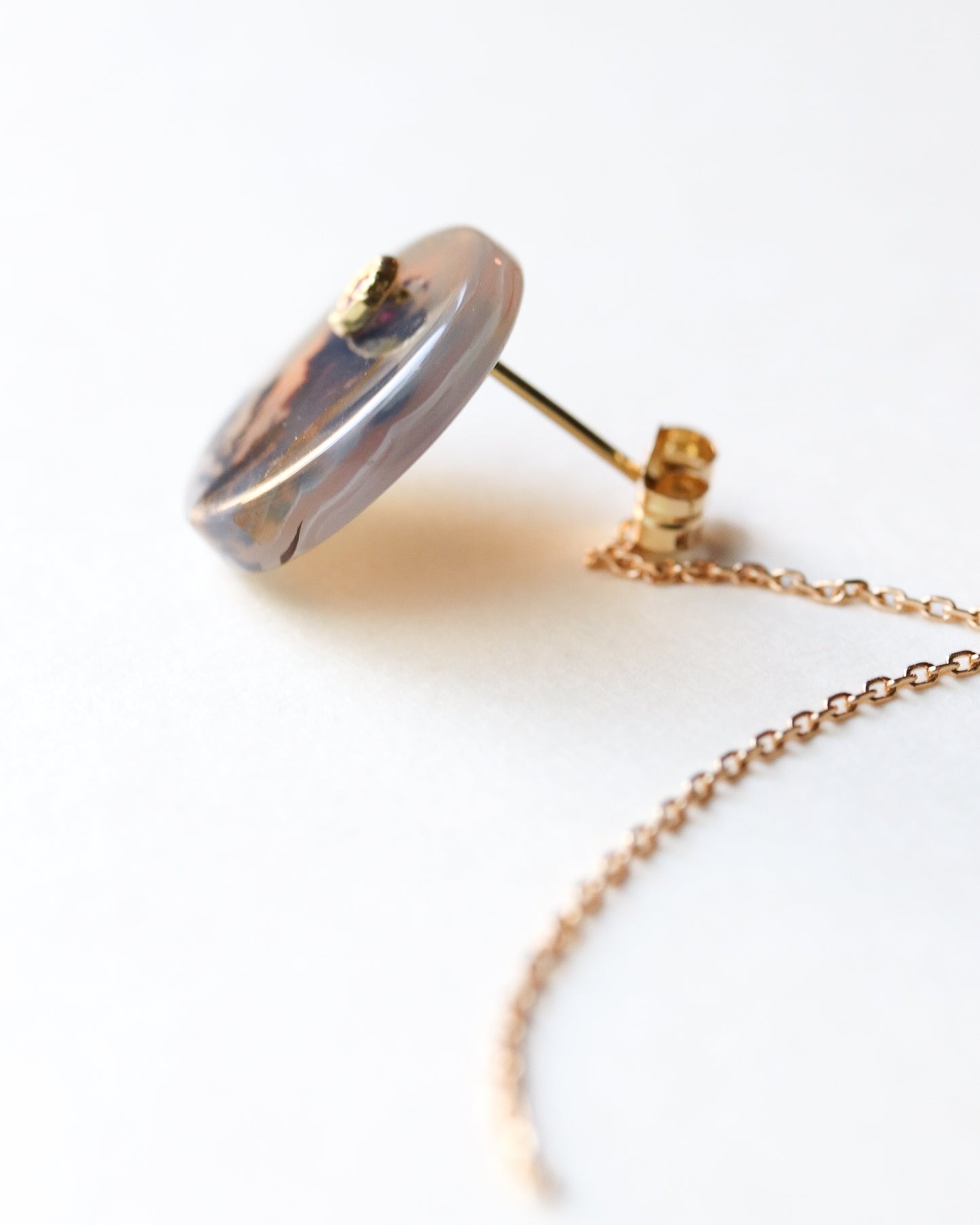 天然石に穴を開けてピアスのポストを通したFlat Pierced。