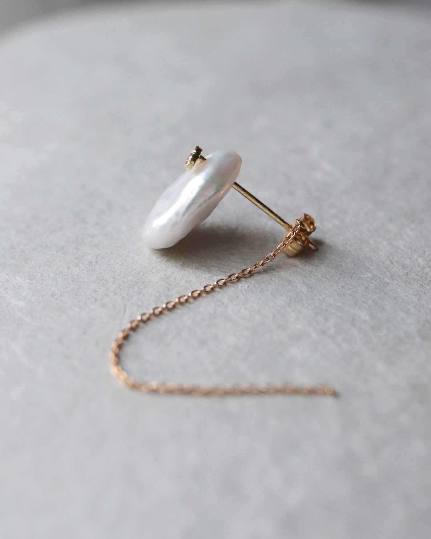 Product Name : Flat Pierced Earring - Keshi Pearl -