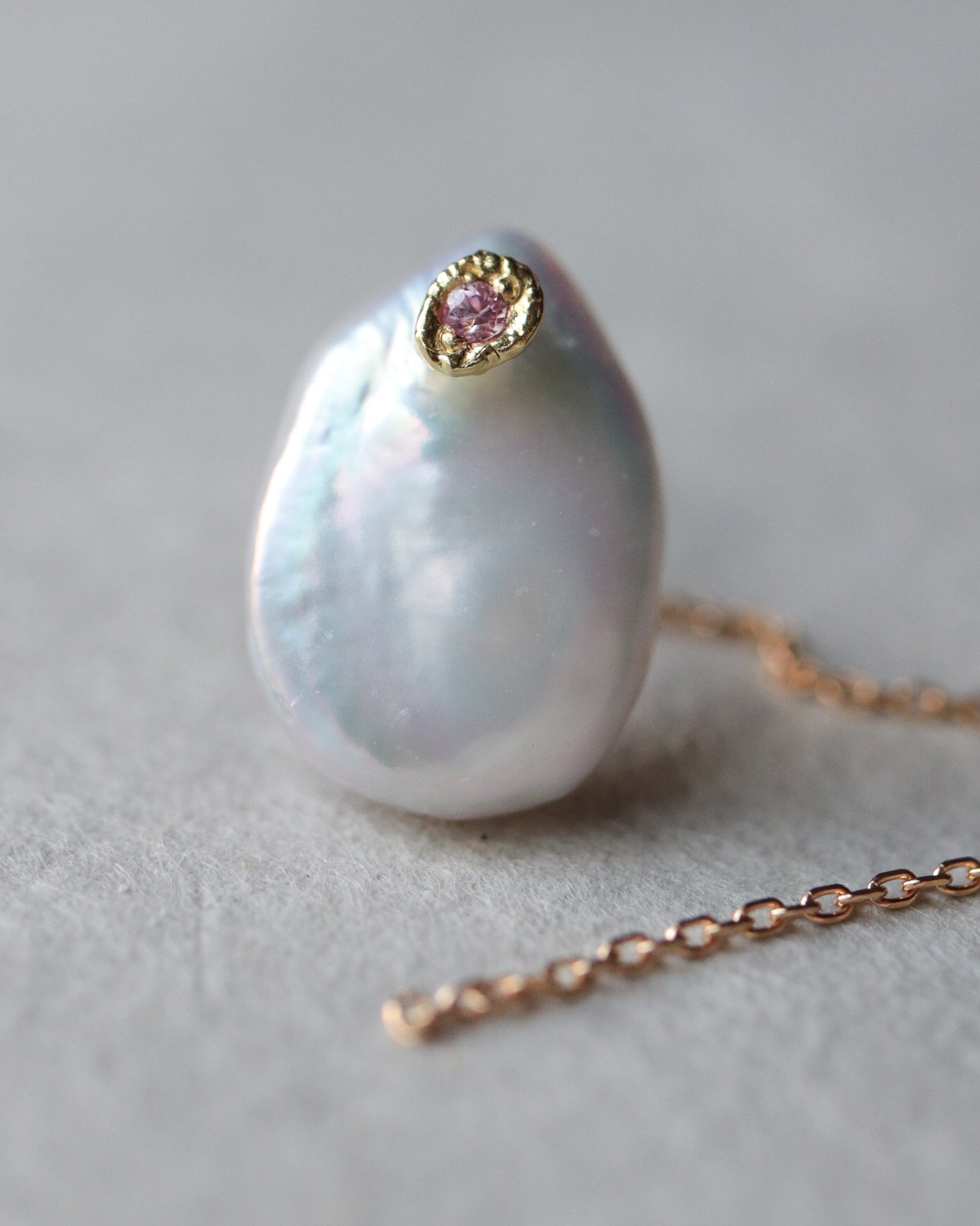 Product Name : Flat Pierced Earring - Keshi Pearl -