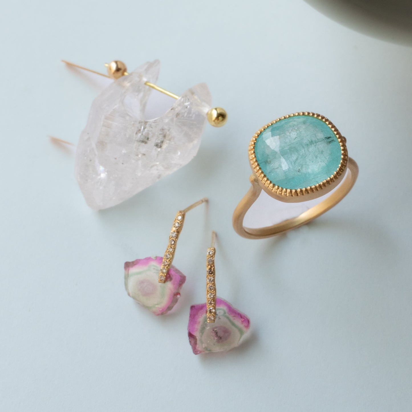 Hibiki Stone Pierced Earring - Bicolor Tourmaline -