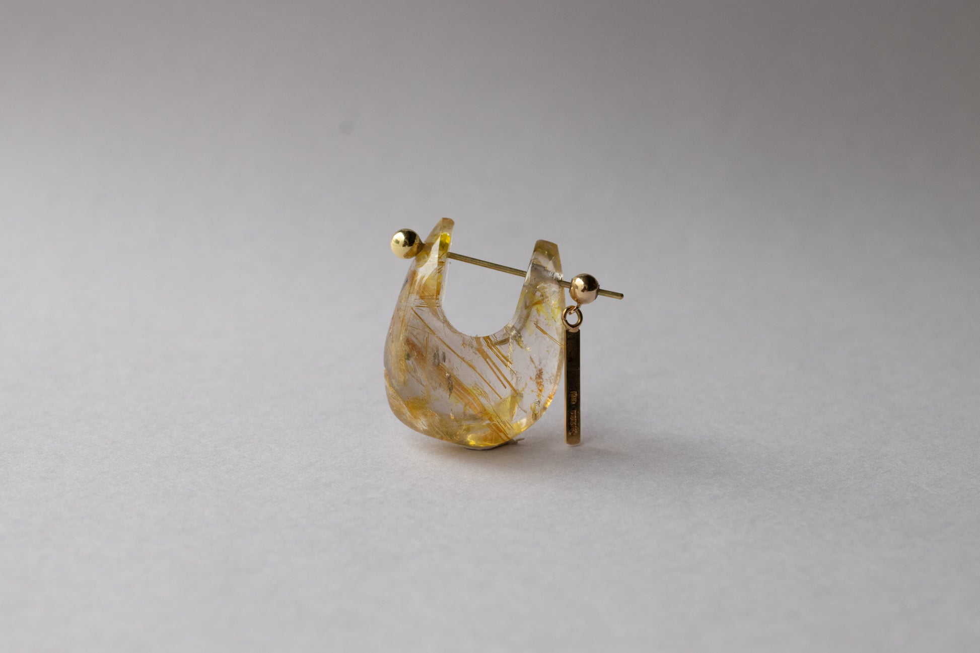 Rock Pierced Earring - Golden Rutilated Quartz -
