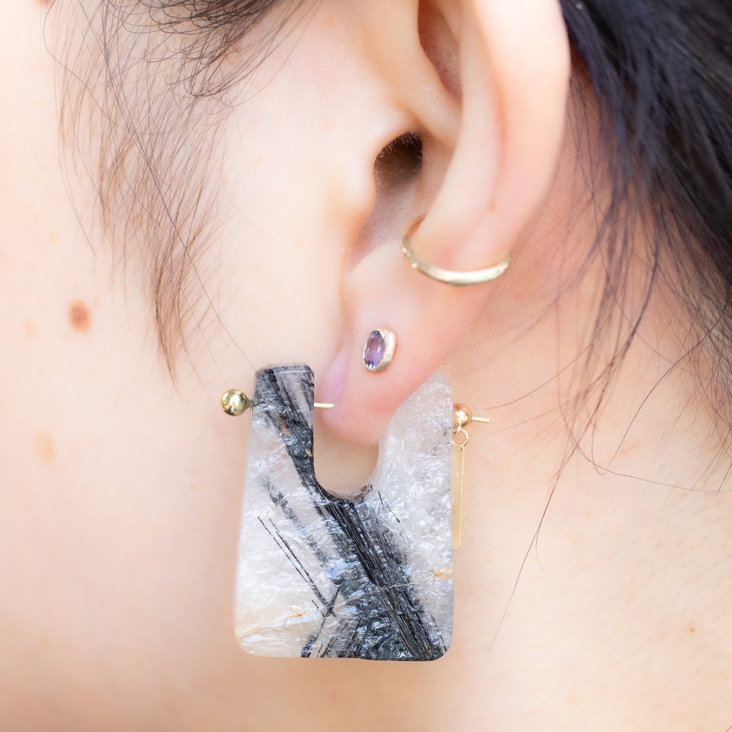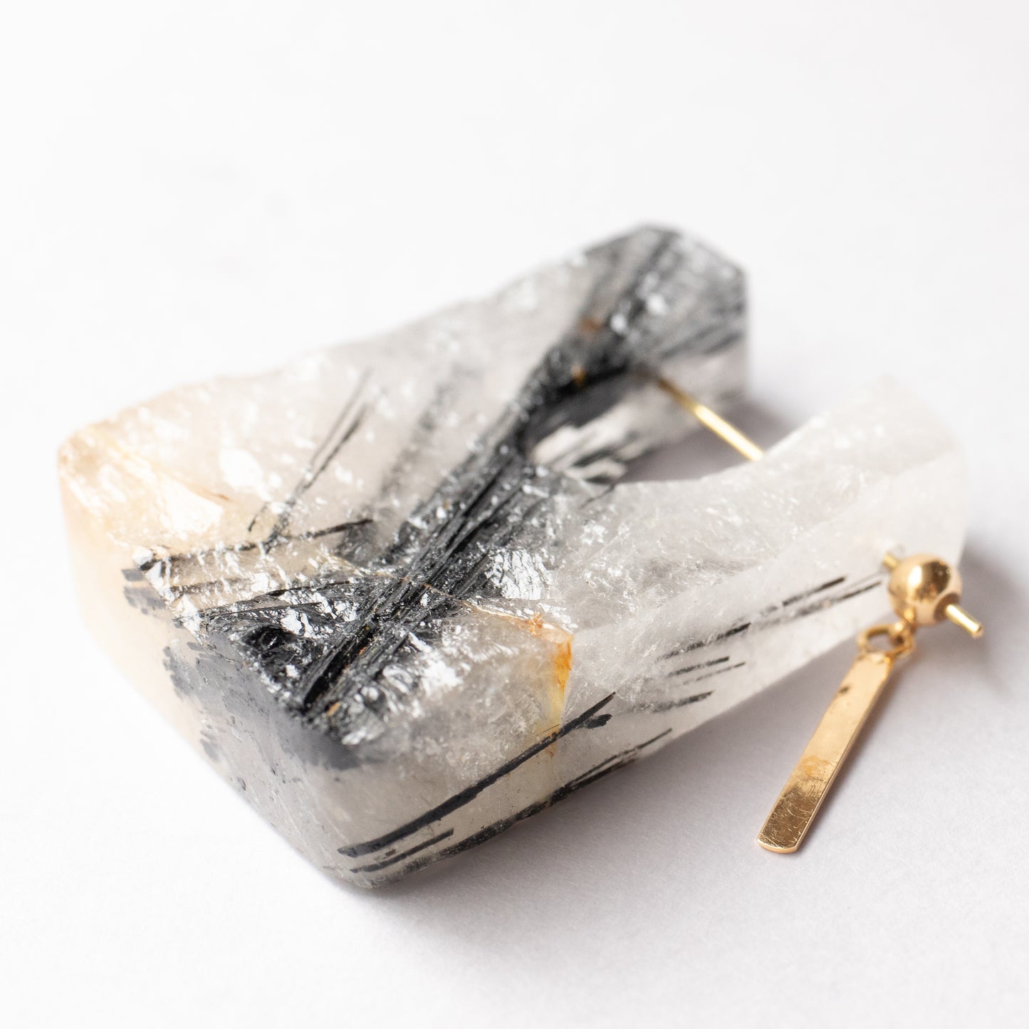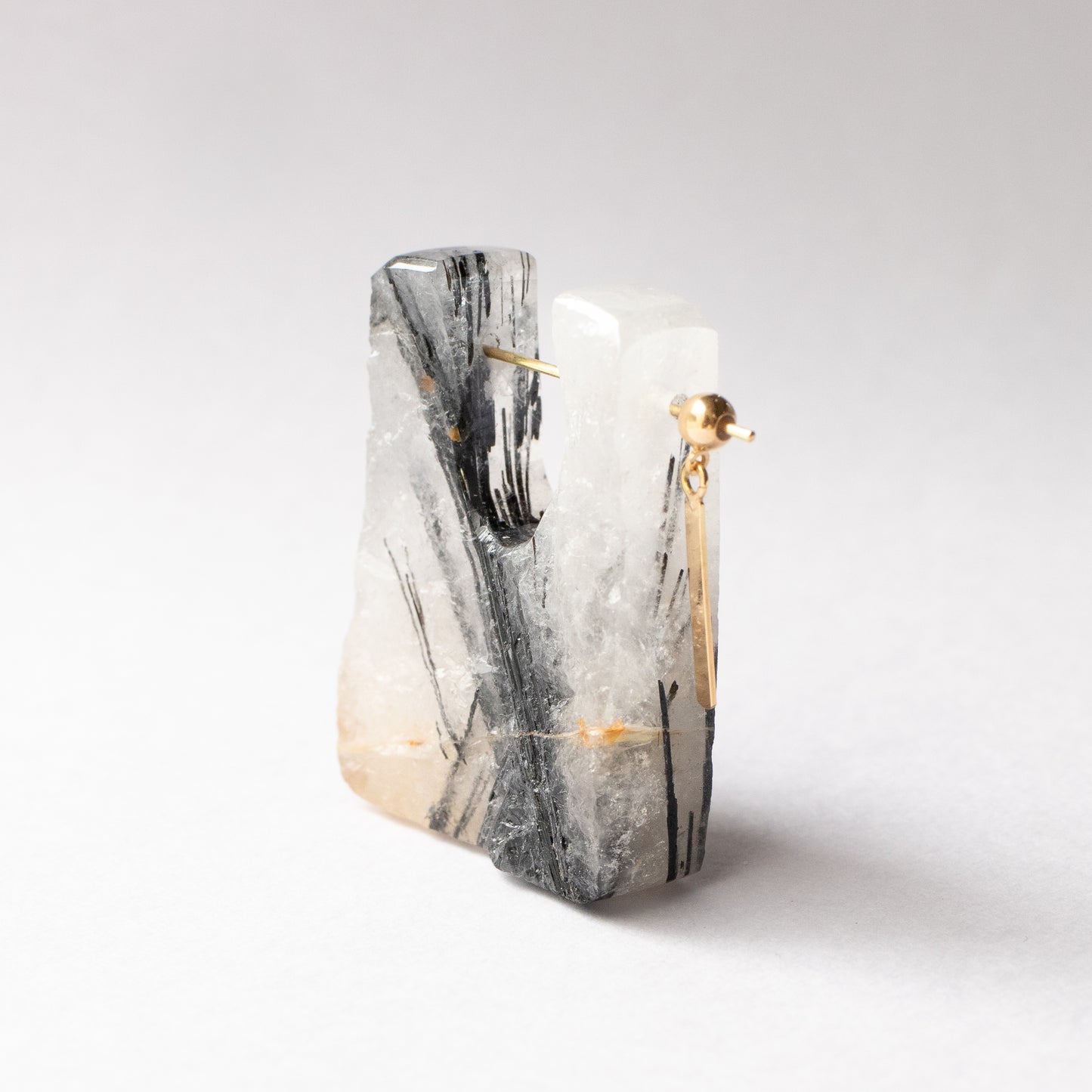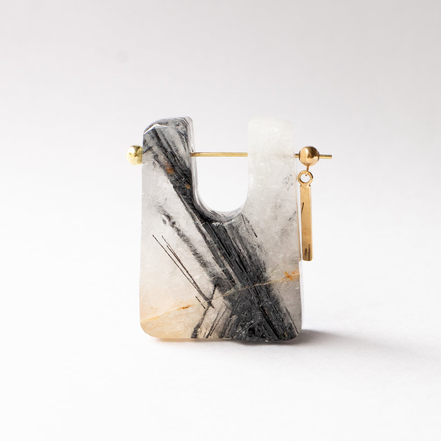 Product Name : Rock Pierced Earring - Tourmalinated Quartz -