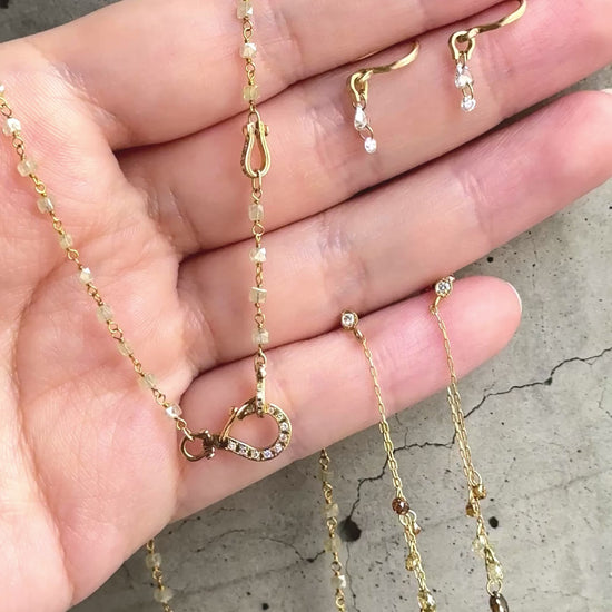 淡く柔らかなグリーンを含んだスクエアカットのダイヤモンドを、一周あしらったLink Necklace。