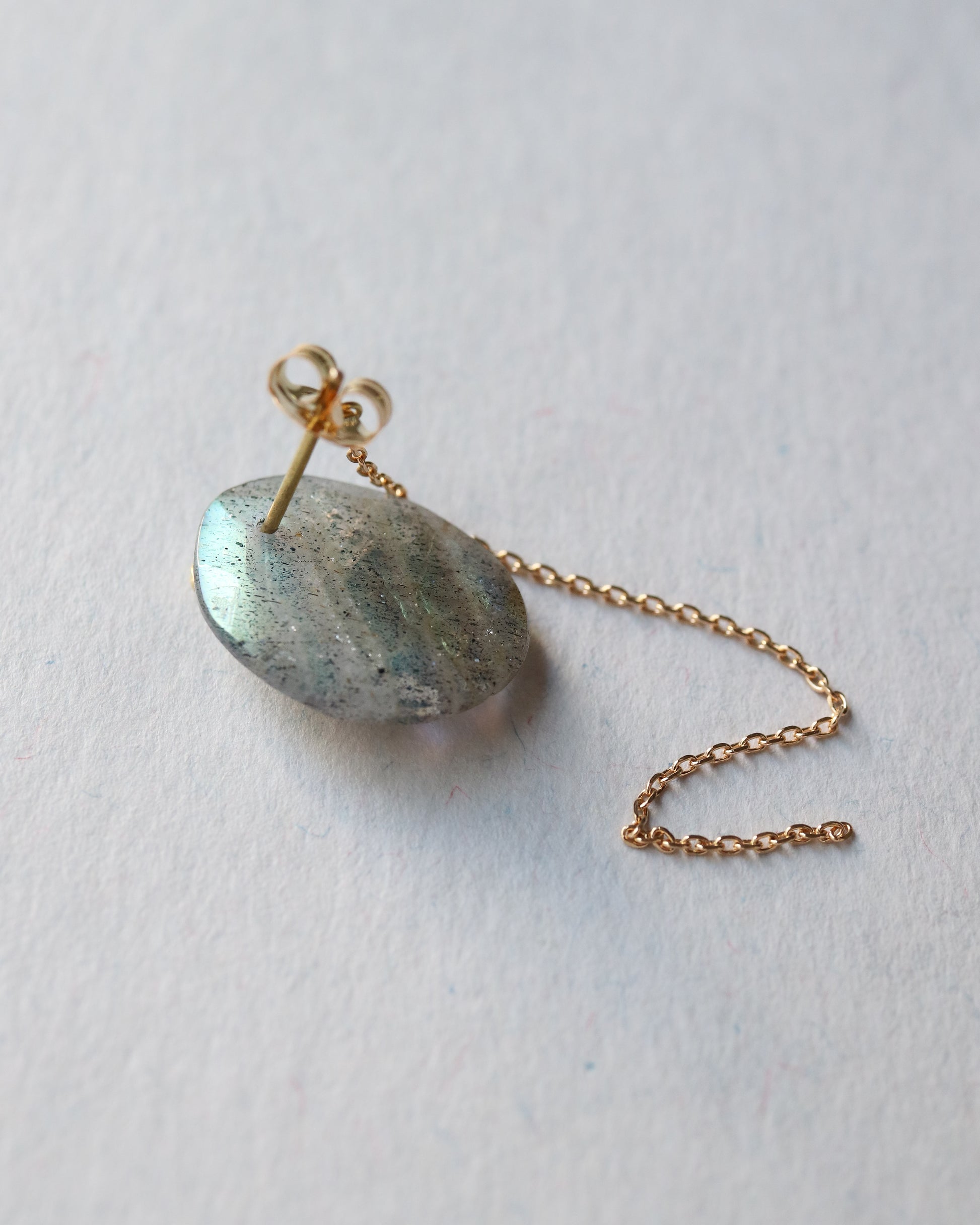 天然石に穴を開けてピアスのポストを通したFlat Pierced。